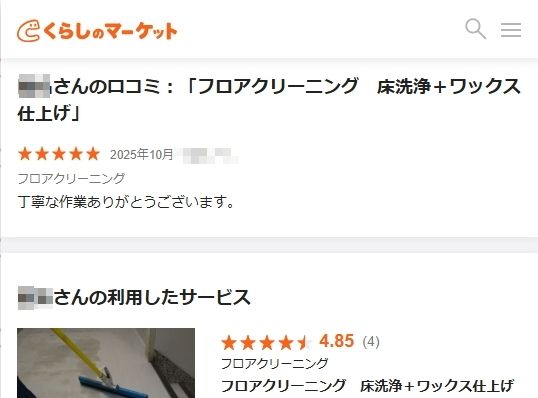#くらしのマーケット 経由でご利用いただいたお客様からのレビューが届きました! #フローリングワックス 「フロアクリー