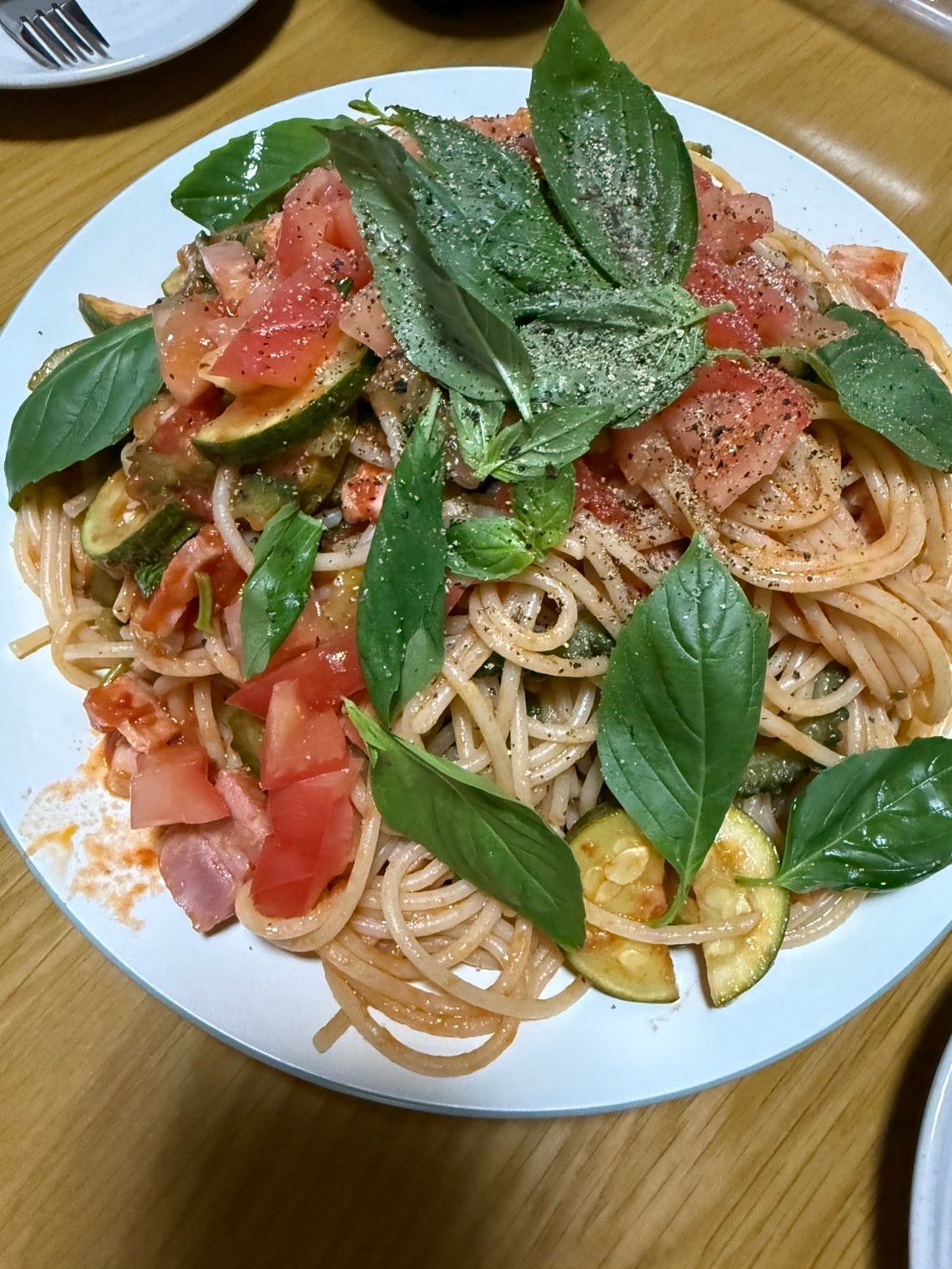 パスタはソースを作れば茹であげた麺と和えるだけなので割と簡単です🍝