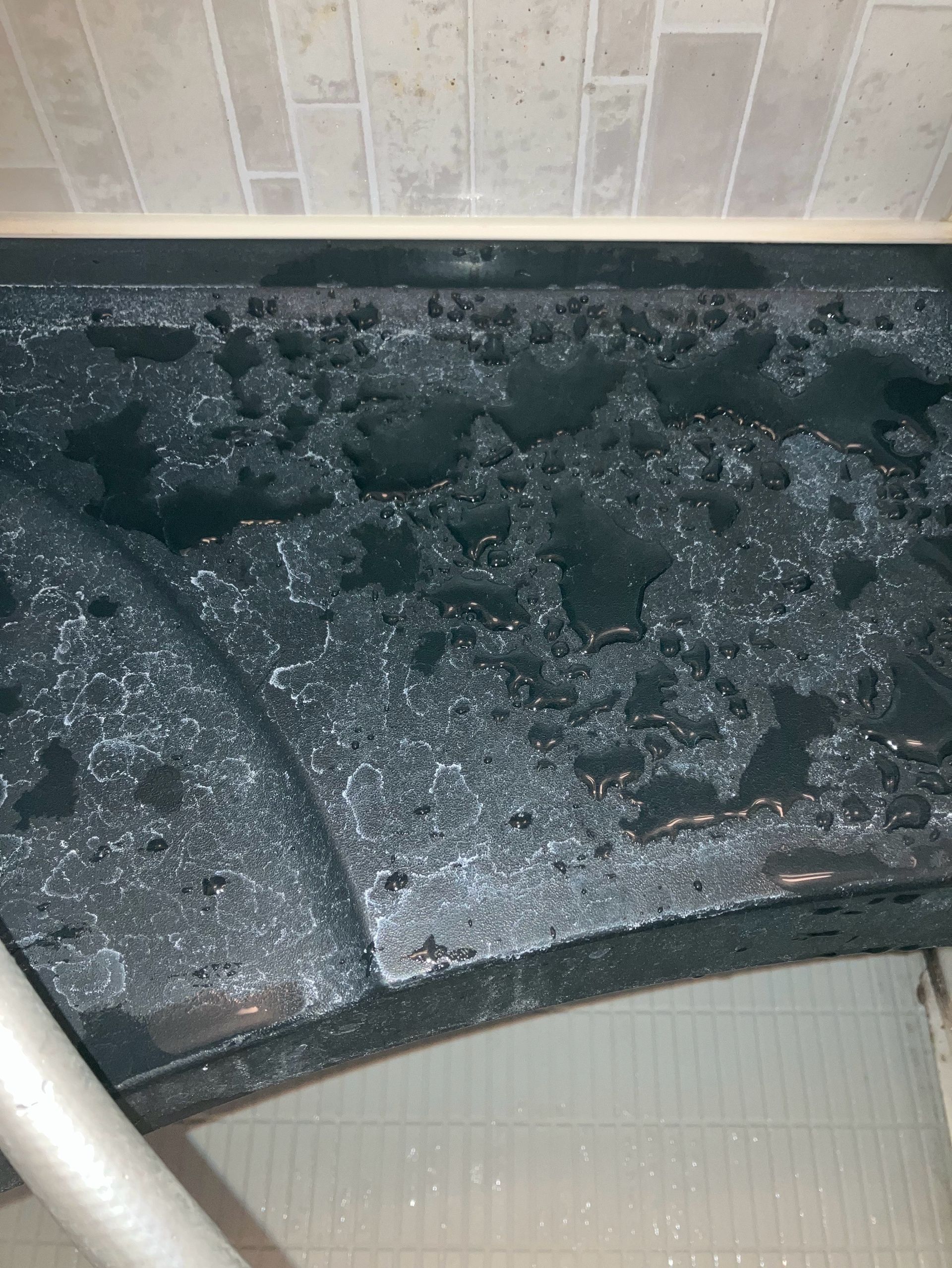 浴室の鏡の下部にある台は、汚れがつきやすいです。特に黒系の色の場合は、水アカや石鹸汚れが目立ってしまいます。
