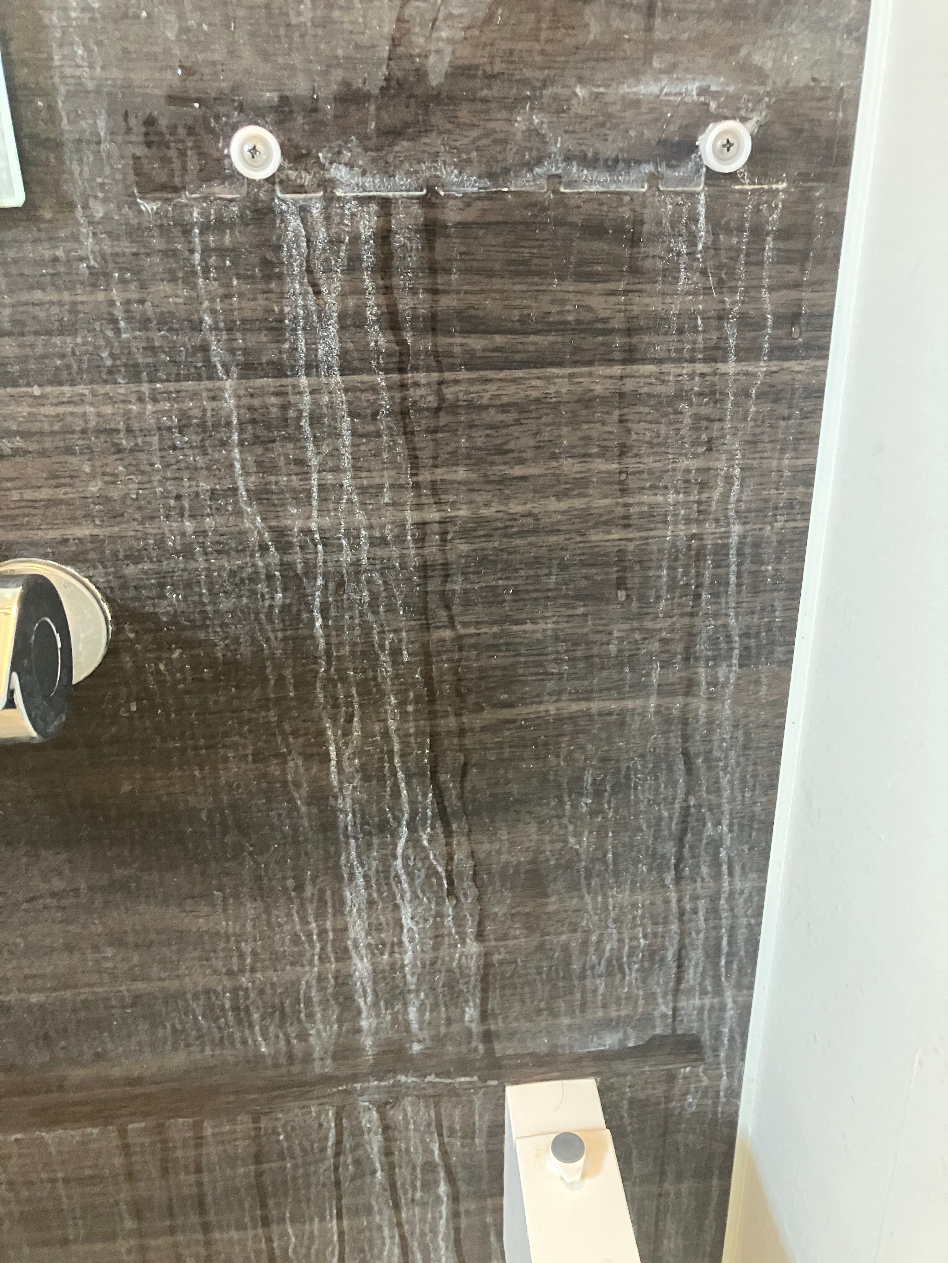 浴室の壁が木目調や黒色系の場合、石鹸汚れで白い汚れが目立ってしまいます。当方ではこのような汚れもキレイさっぱりと落とします。諦めていた汚れもなくなって、スッキリします。ぜひ一度ご利用くださいね♪