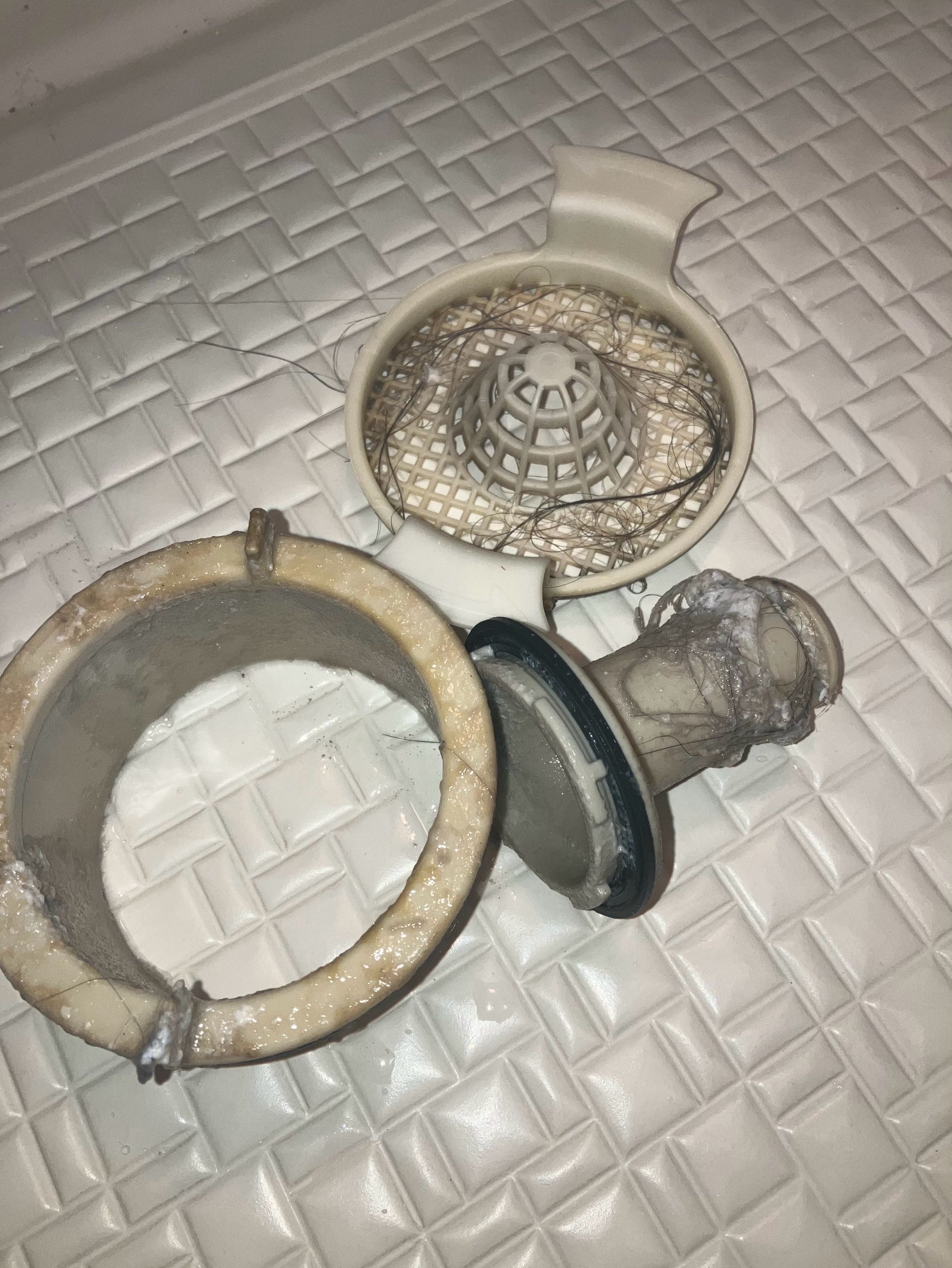 排水口の部分、取り外してお掃除してますか?髪の毛を受ける網の部分はお掃除するかと思います。その他の部品もお掃除しましょう!嫌な臭いが無くなり、流れも良くなります😊ぜひお試しくださいね☆