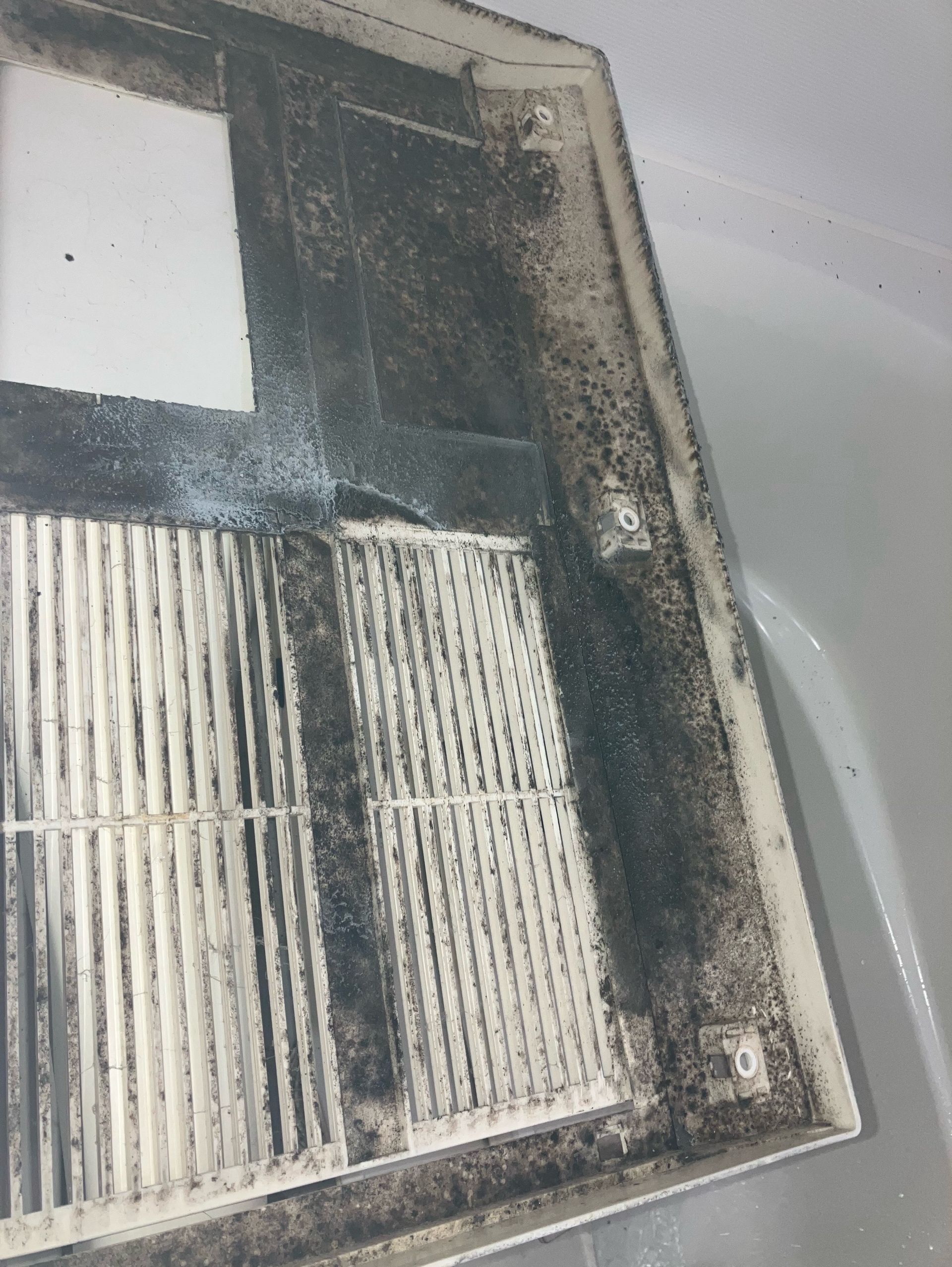 換気扇カバーの内側を見ると、かなり汚れている場合があります。見えない箇所のカビは他の箇所へのカビを誘発してしまいます。これからの季節、湿度が高くなるので今の内にクリーニングしておきたいですね🎵