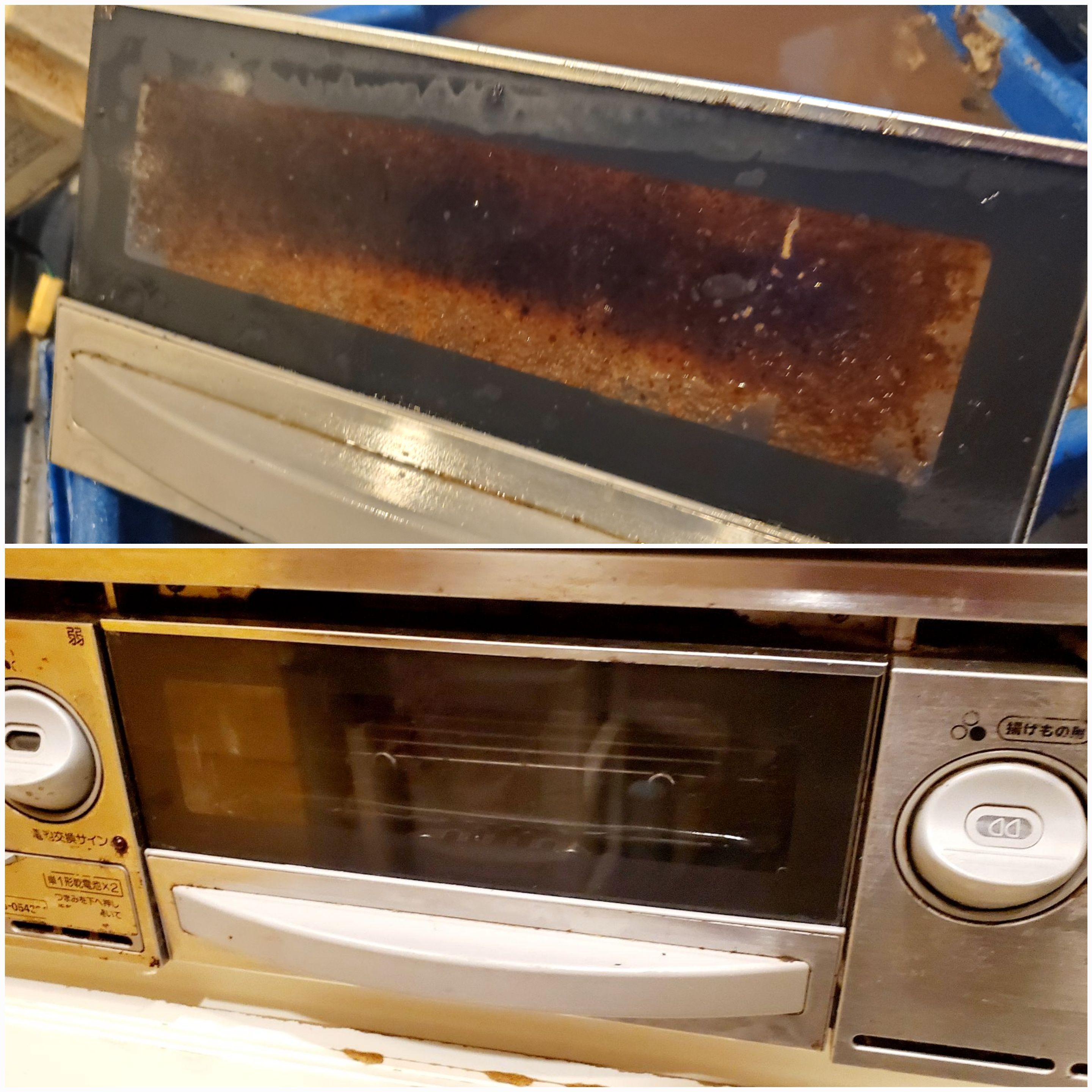 グリルもコゲが大量に蓄積され、高温のお湯につけ置きです。