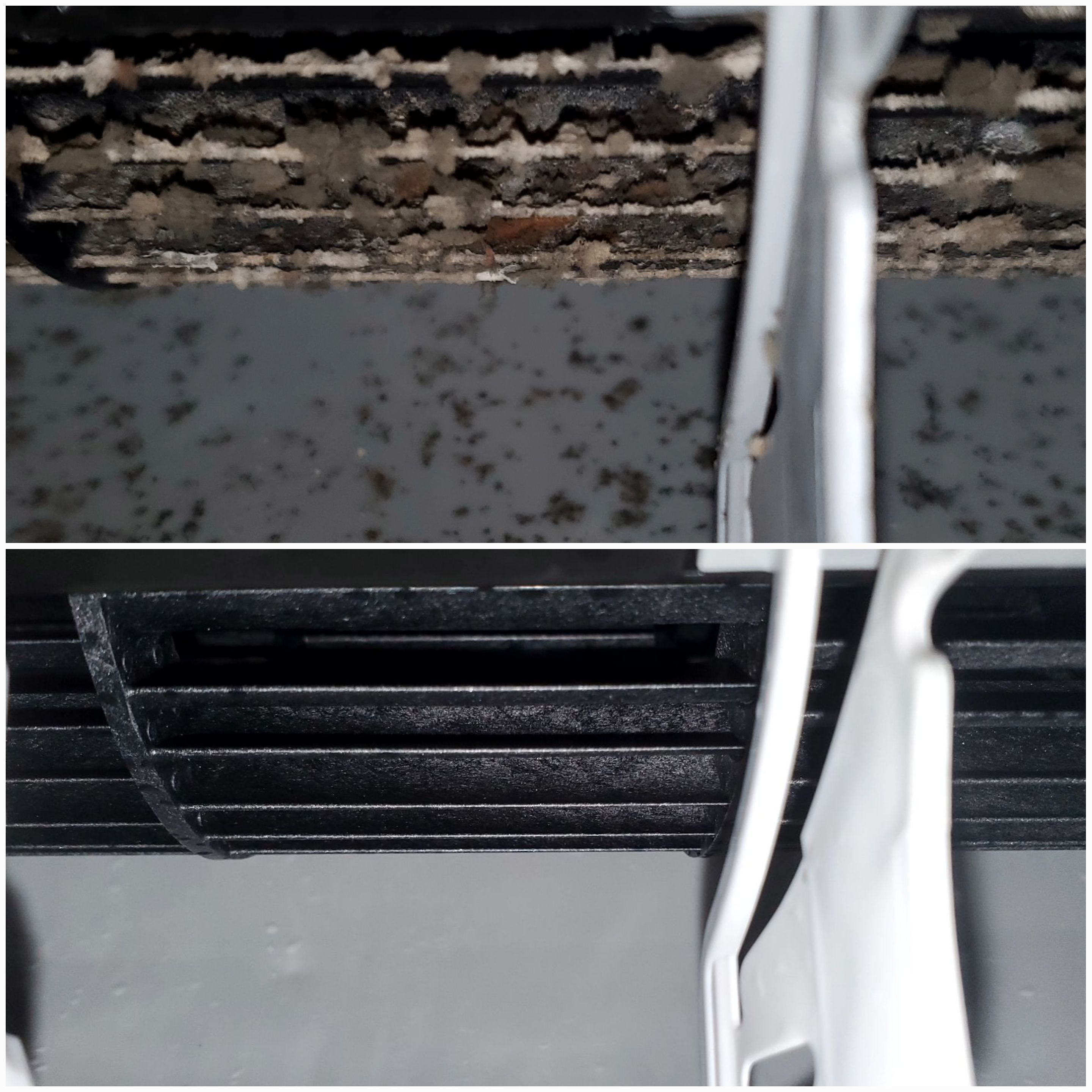 リビングの油や湿気を吸い込み、ペットの毛も吸い込んでいます。フル稼働の為、絶えずエアコンは湿気状態、内部クリーンをしていない為、エアコン本体の乾燥が出来ず、カビがどんどん増えていきます。