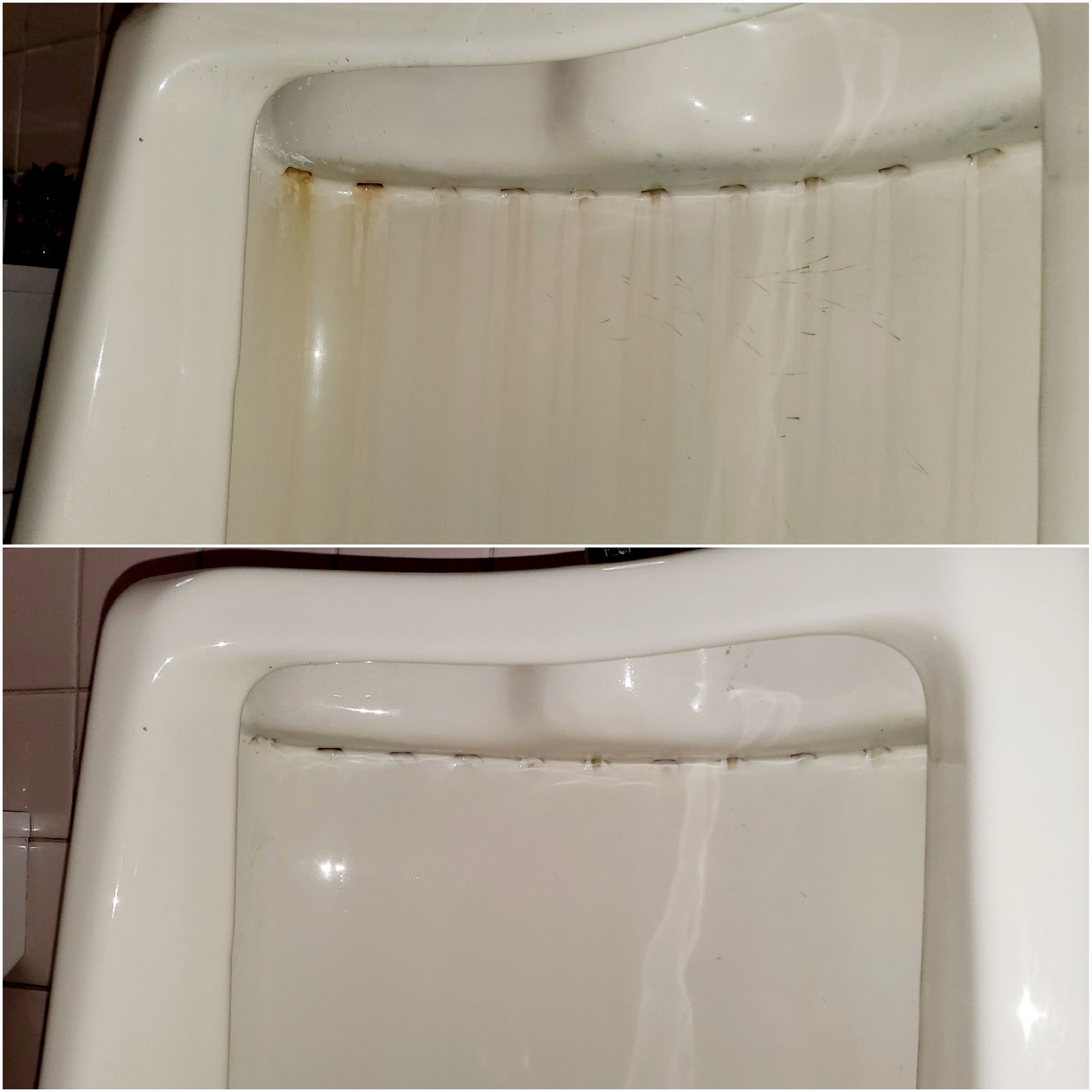 十年以上の尿石、水垢汚れが筋となって中々、取れません。