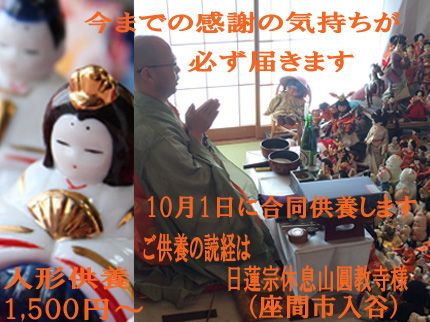 当社では来月1日に人形合同供養を開催いたします。