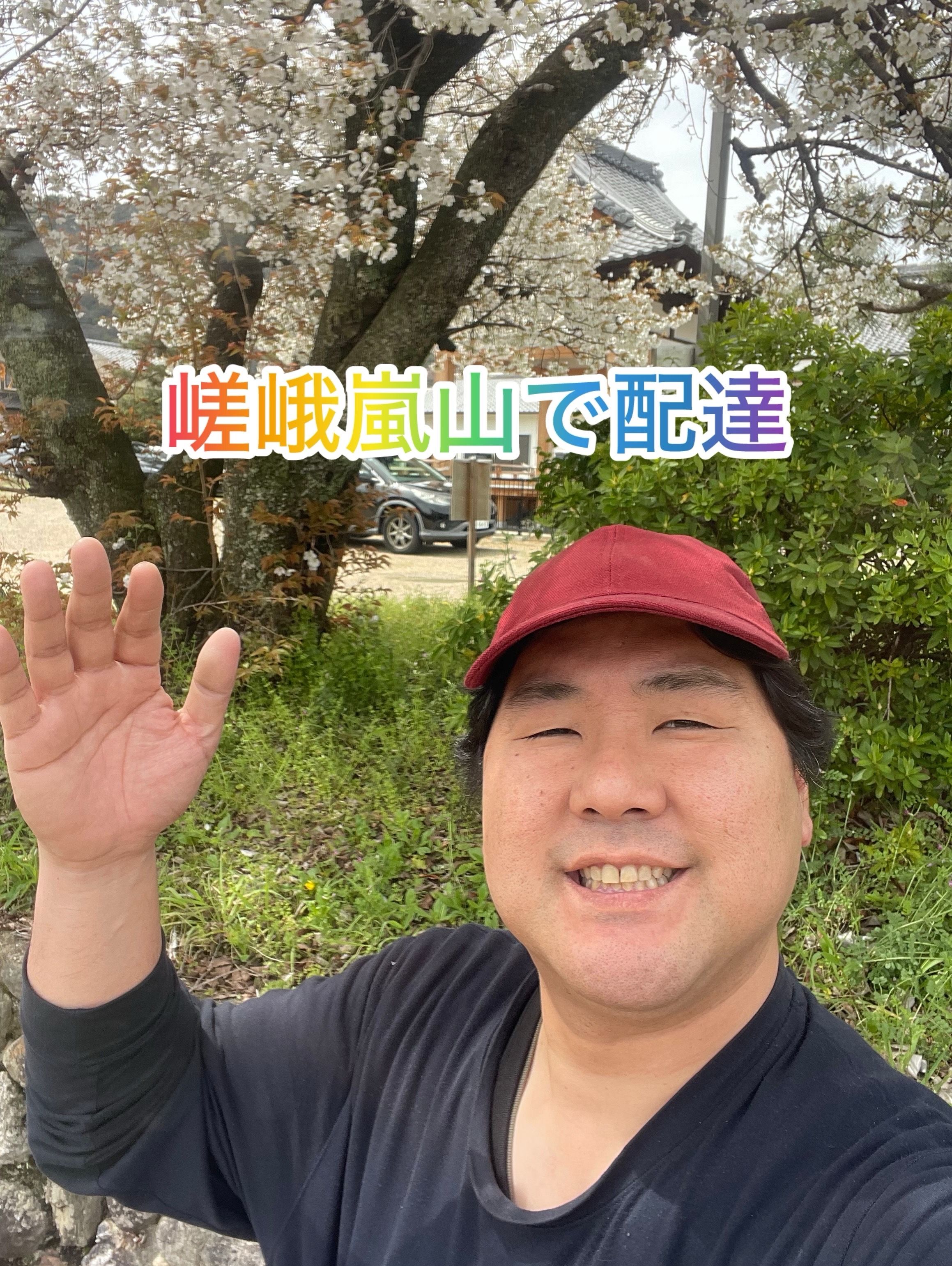 嵯峨嵐山にて配達のお話がありました。桜咲いていますね。日曜日なのもありすごい人、特に外国人でいっぱいでした。