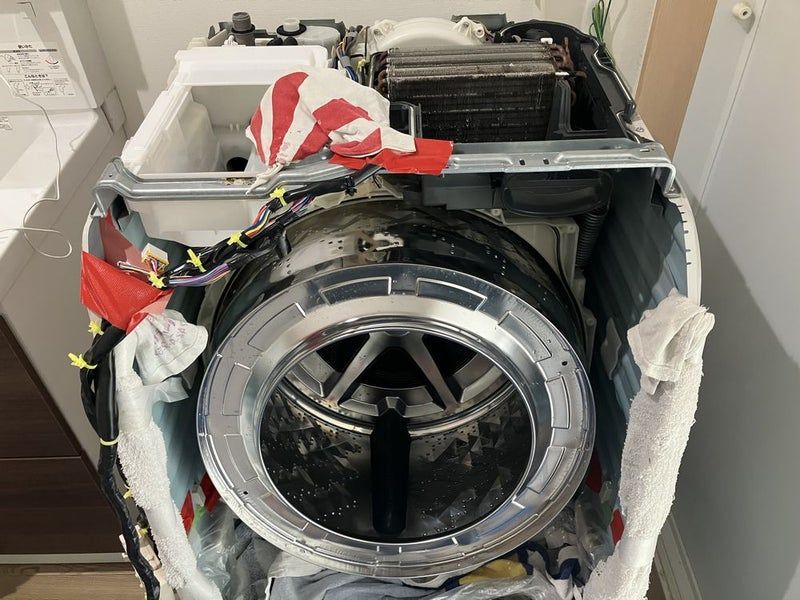 洗剤投入口→ヒートポンプユニット→洗濯槽・脱水槽を高圧洗浄でキレイにしました✨