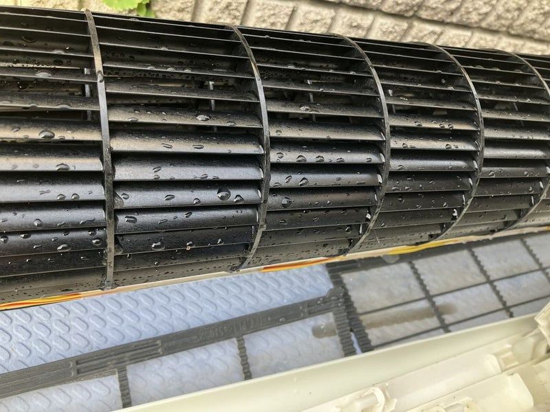 送風ファンは分解オプション無くても洗いますが、強く汚れていて隅々まで洗いたい場合は、やはり外して洗うのが一番です。