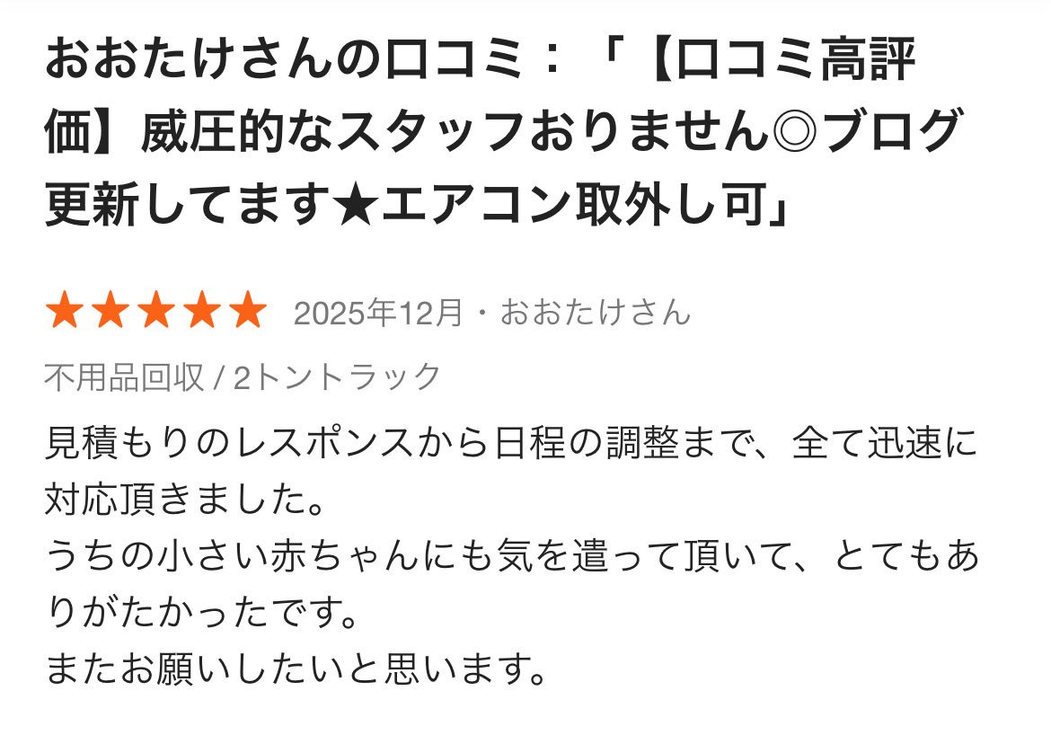 本日は鶴見区のお客様より、嬉しい口コミを頂きましたのでご紹介いたします😊