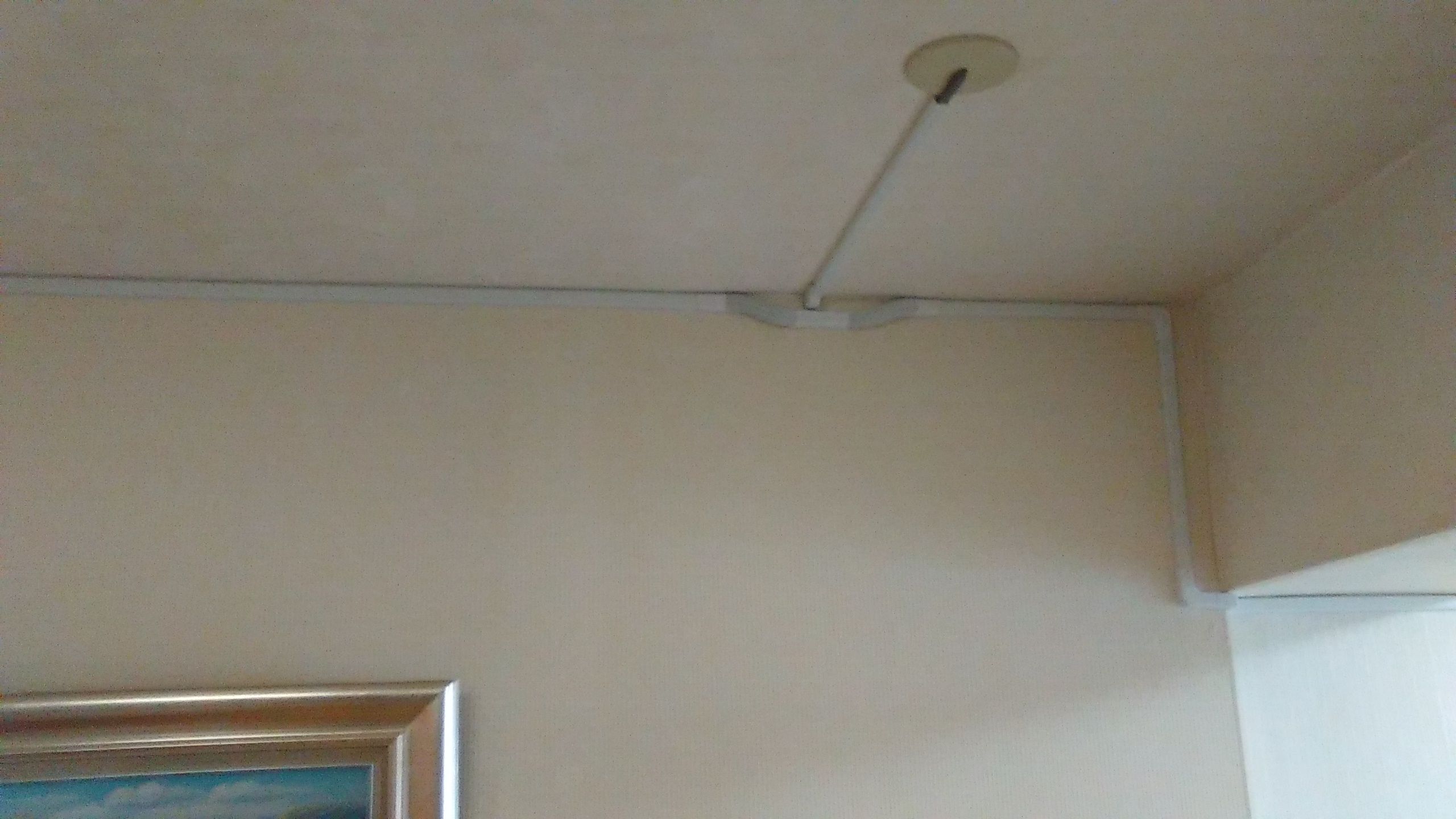 マンションのエアコン入替工事でした。既存のエアコンは延長コード使用で焦げていました。 今回は専用回路増設モール仕上げです。