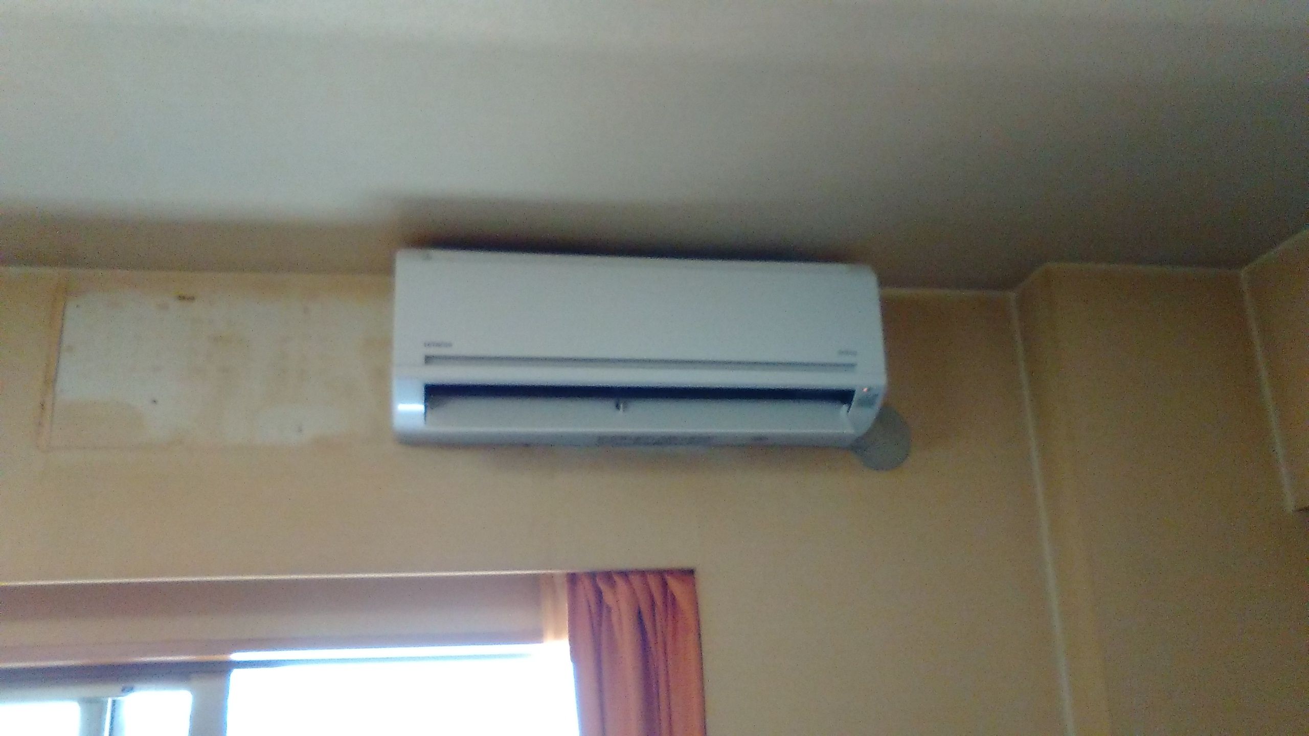 今回既存のエアコン室内機の右側から配管が水平に露出していました。数年後水漏れの可能性があるため右にずらしての設置を提案させて頂きました。