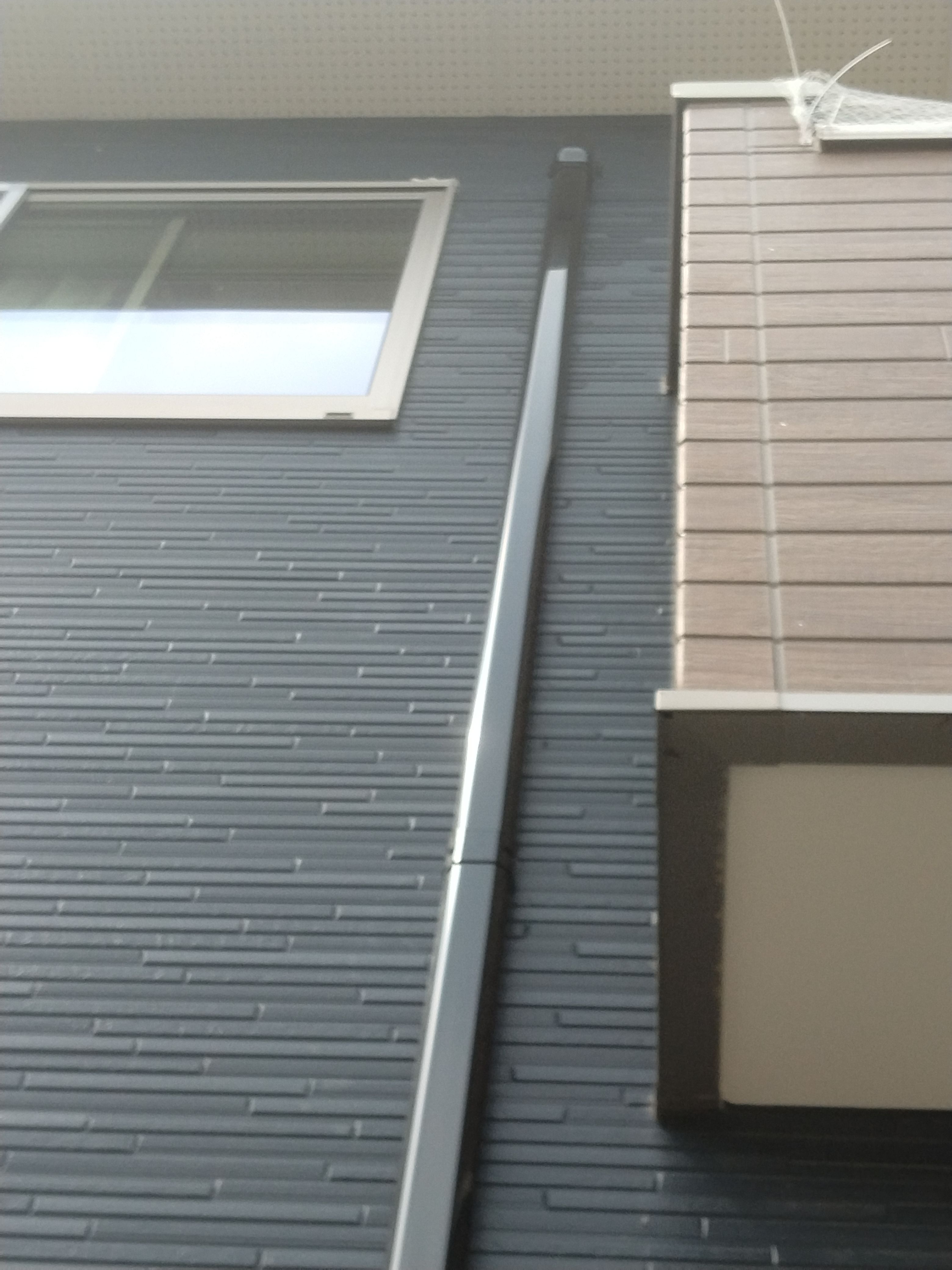 その後、宗像市でエアコン工事をしました。2階から1階に立ち下げ工事で黒の配管カバーを施工しました。