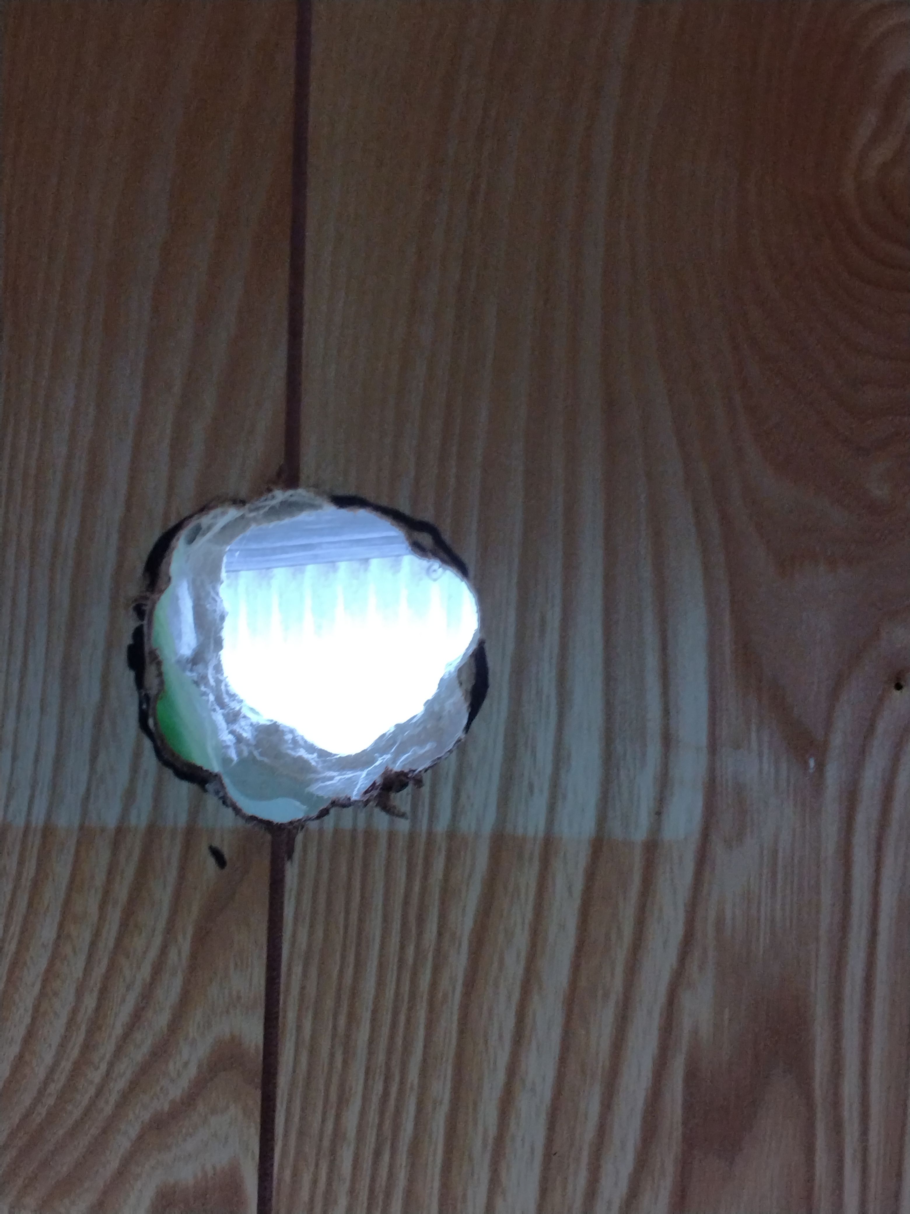 今日は福津市でエアコン工事をしました。エアコン用の穴が逆勾配になっていましたので、手直しをしてスリーブを入れました。
