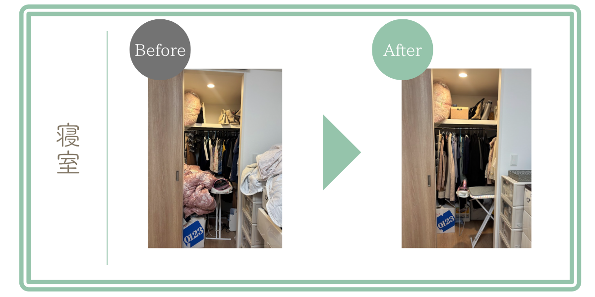 お引っ越しから間もないタイミングで、まだ手をつけきれていなかった衣類収納やクローゼットを、【分類】と【仕分け】の基本から丁寧に整理。