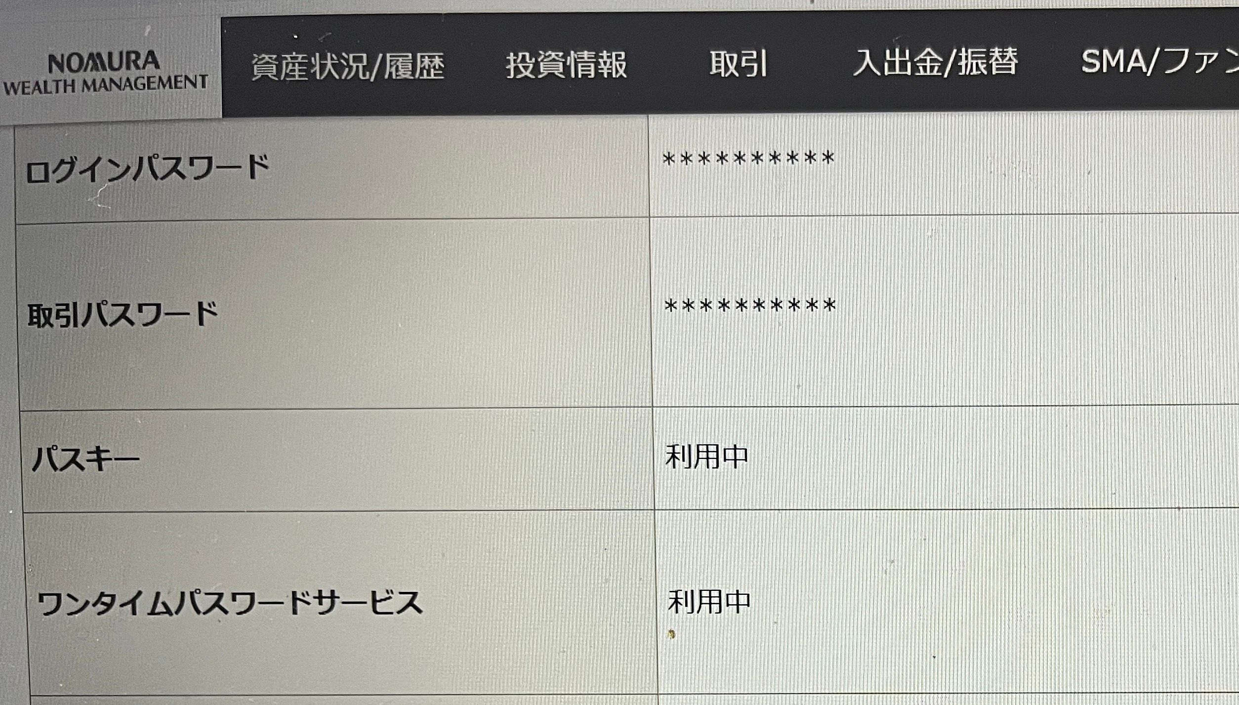 証券会社の大手、野村證券さんのオンラインサービスでは、