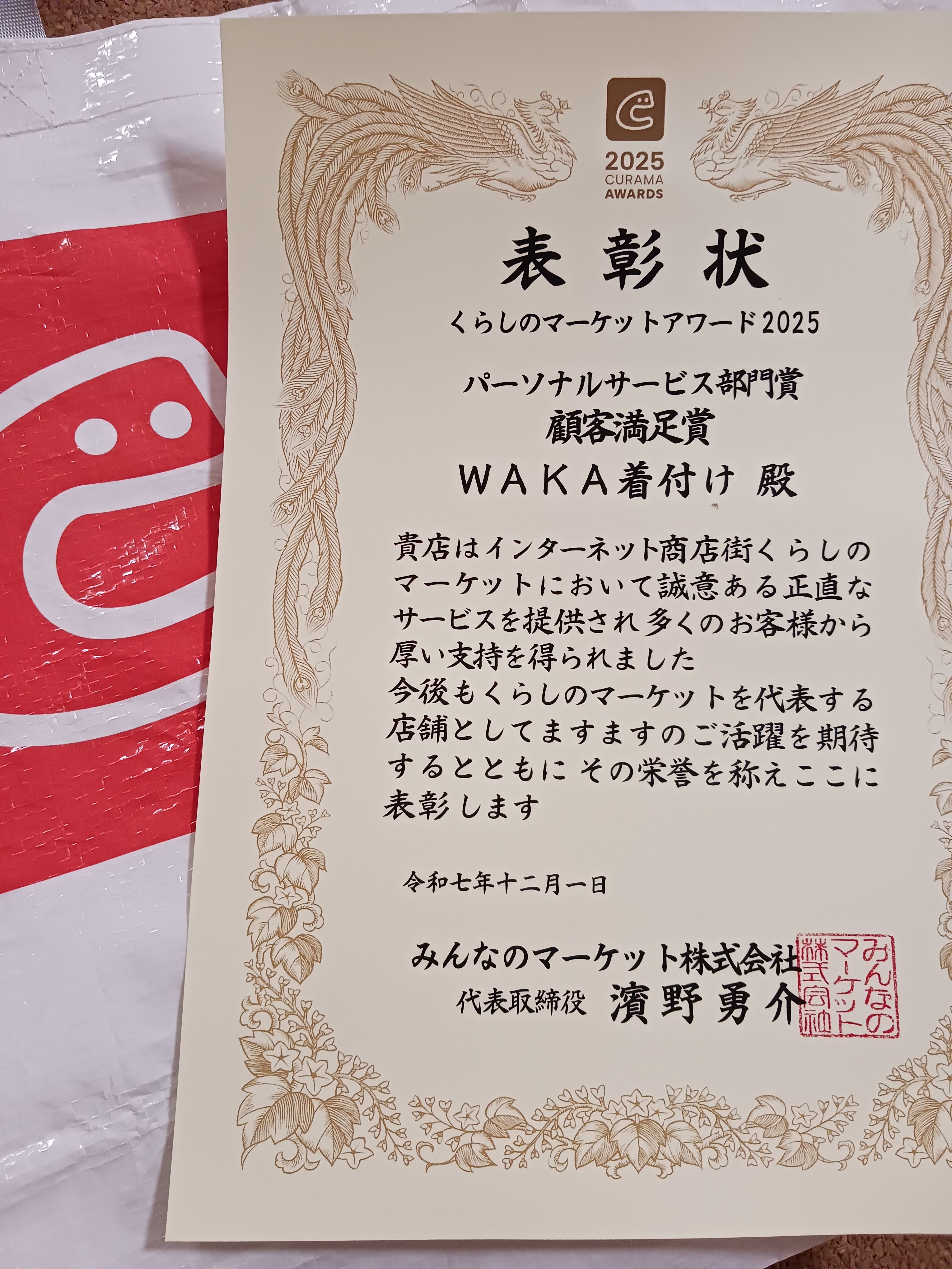 くらしのマーケットアワード'2025今年も「顧客満足賞」頂きました!「お着付け」という好きなお仕事ご評価頂き、本当に嬉しいです。ありがとうございました。来年はどんなお客様に出逢えるかな。楽しみです☆