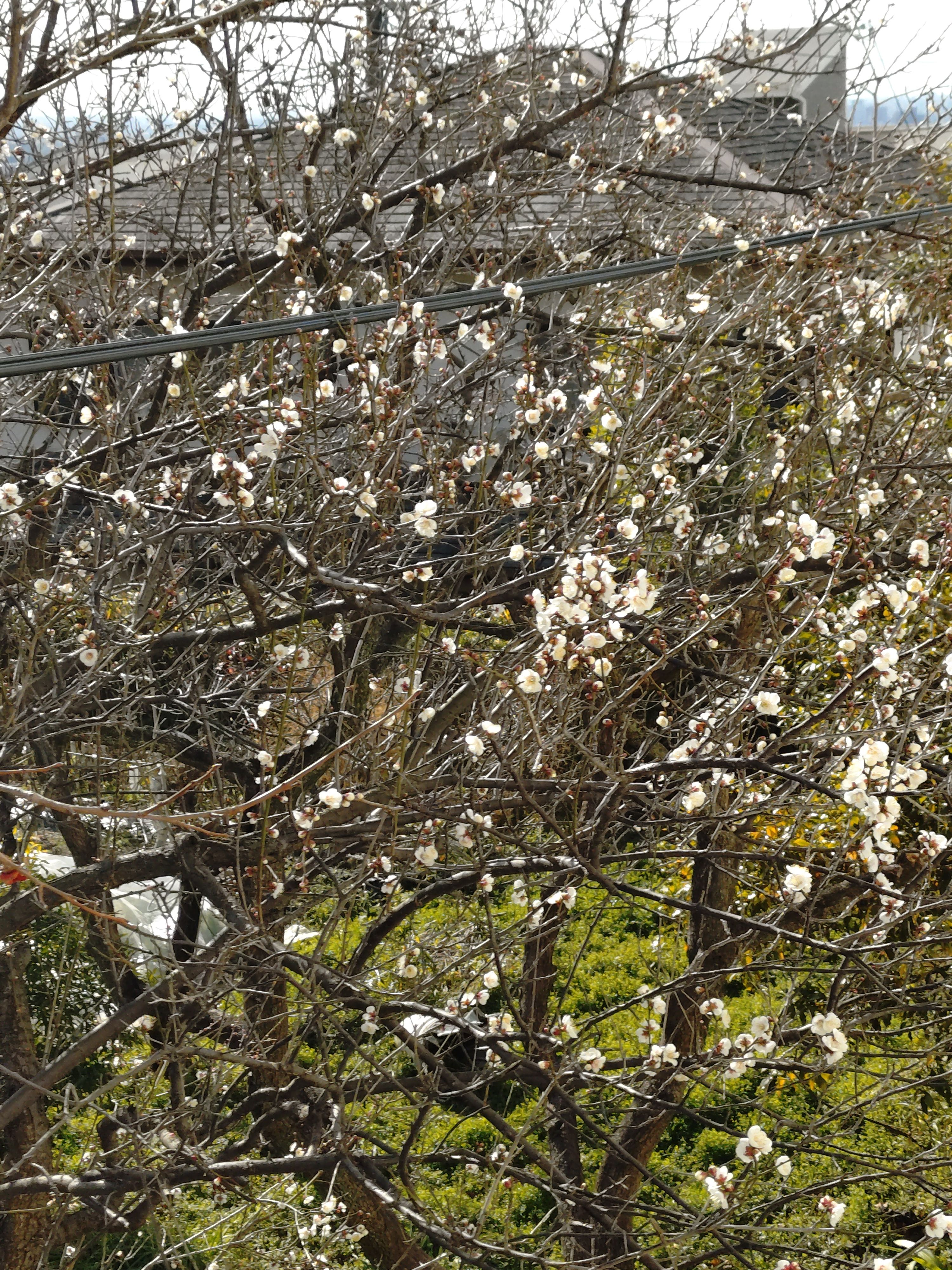 3時の休憩に事務所の2階に上がり、温かいコーヒー☕️を片手に外を見てみると、梅がひっそりと咲き始めています🌸。