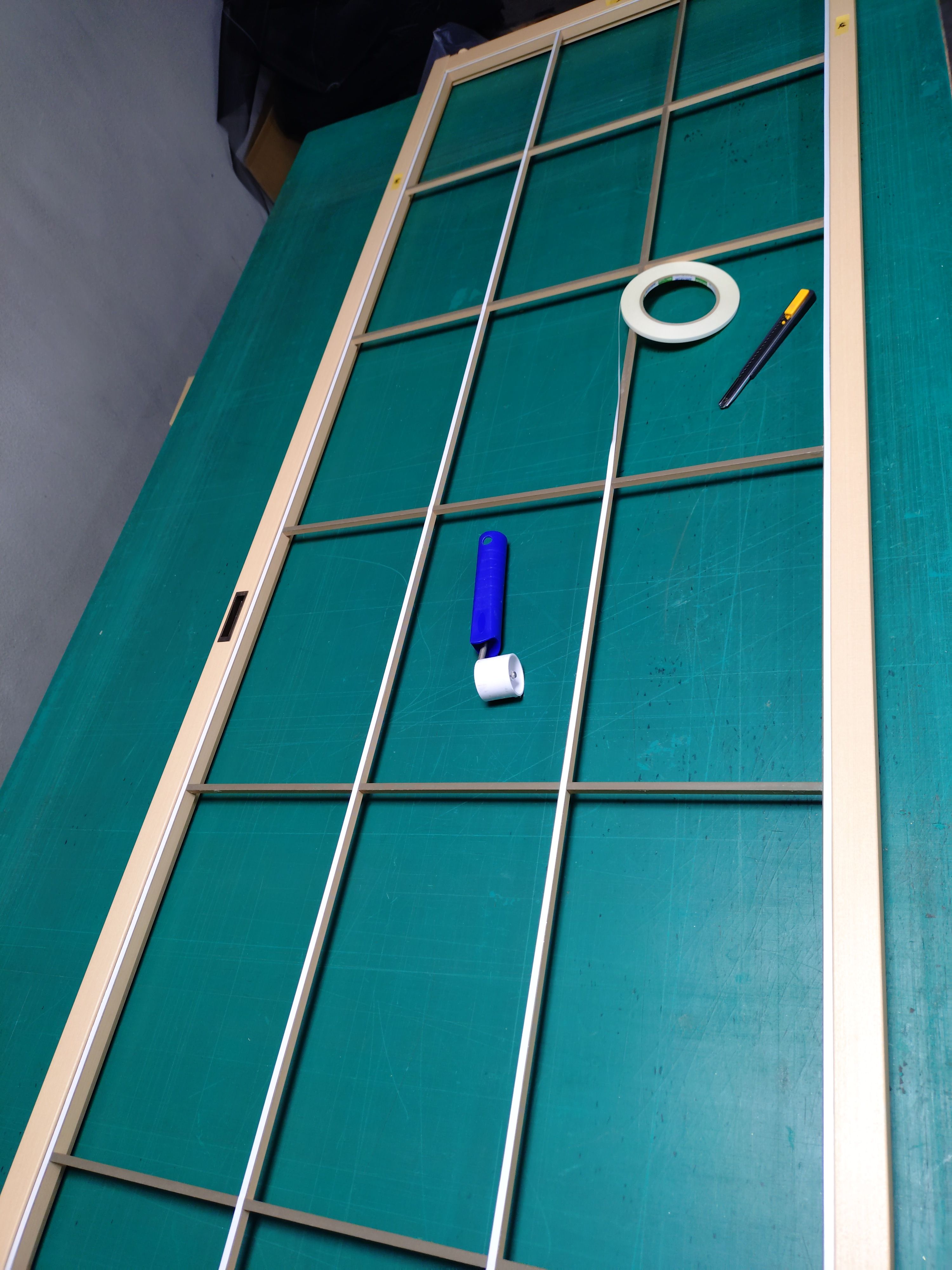 窓用の小さいサイズのものもあれば、なんとベランダに面した2メートルを超える大きいものまで、8枚シートを張り替えました。💪