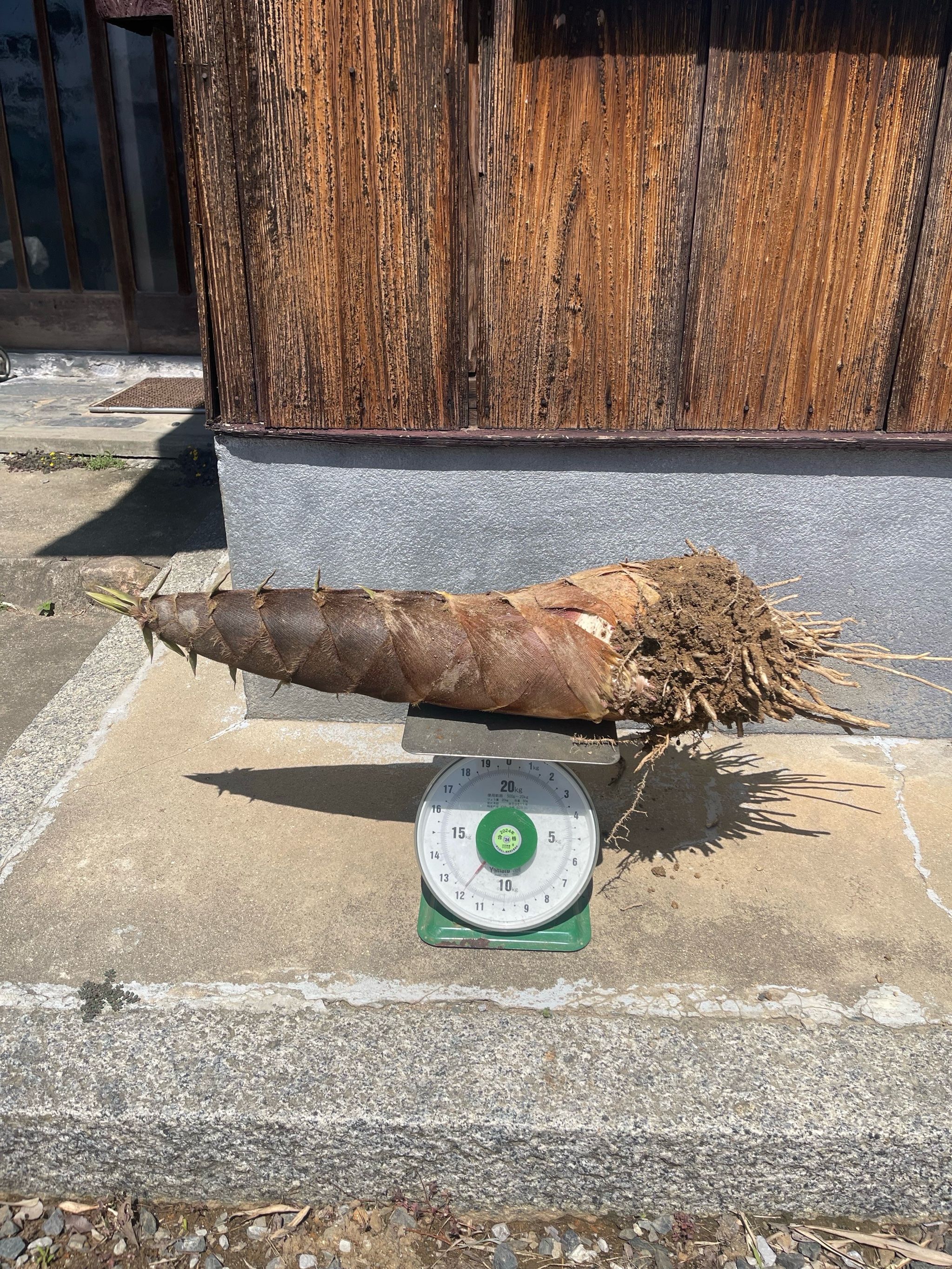 クリーニング後、たけのこ狩りをさせていただいて、バカでかいたけのこを掘り当てました。