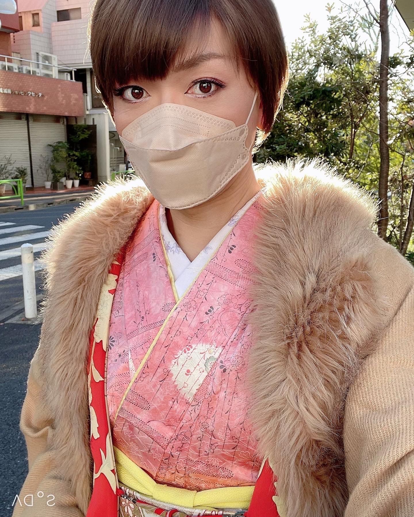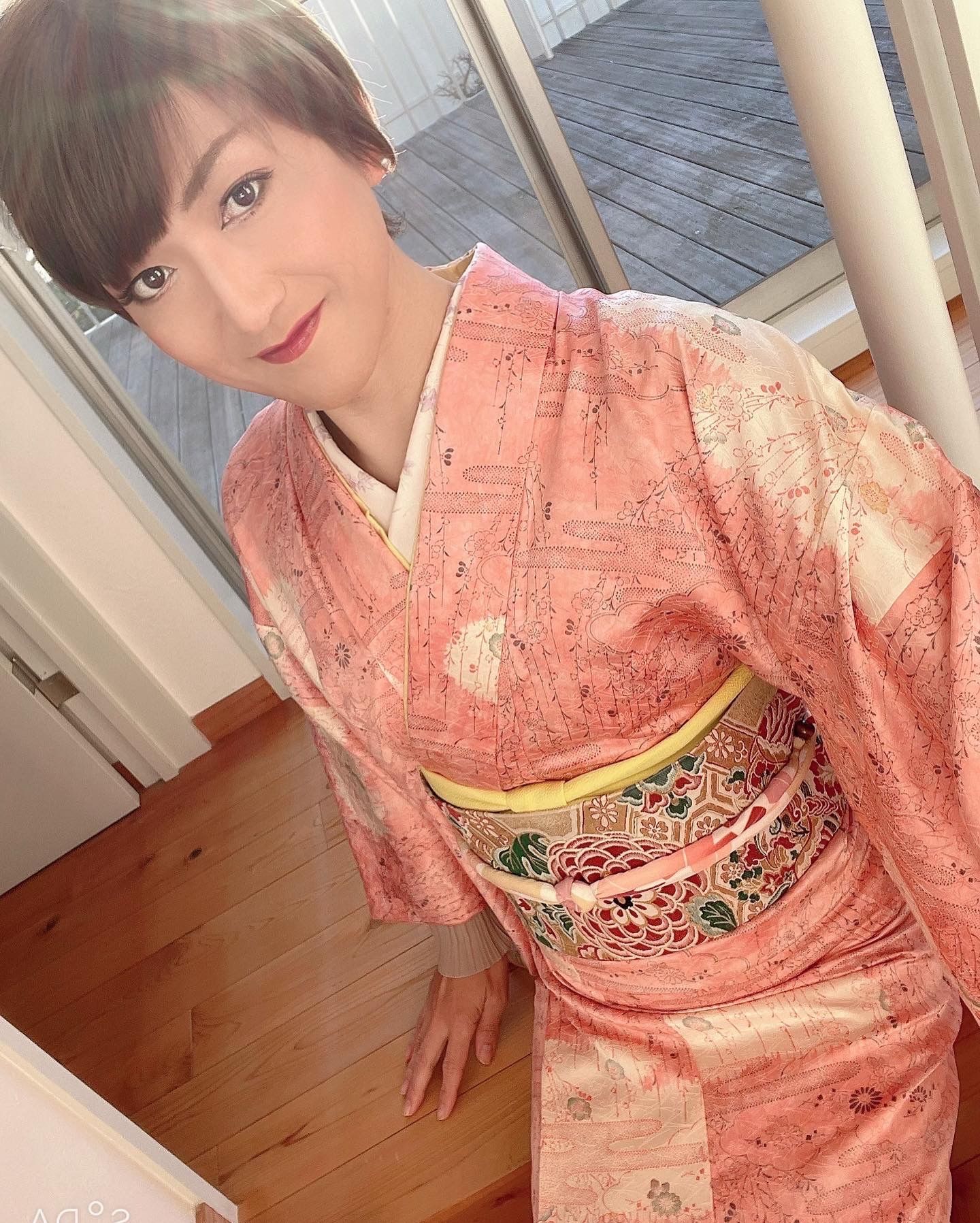 写真は1/2、仕事始めの時の仕事着。梅色の枝垂れ梅柄の付け下げで伺いました。