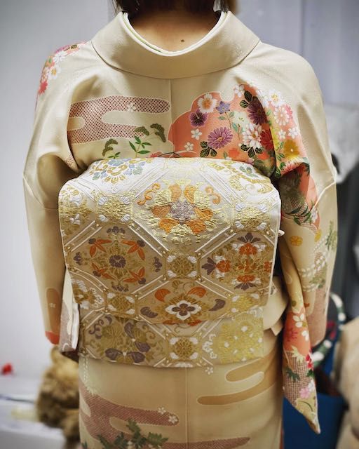 柄行きによってはどうしても合わないのとか、柄合わせるとお太鼓にたたんだ時の折り目が出たり、お太鼓の柄が地味になったりします。そうした場合は無理に合わせません。