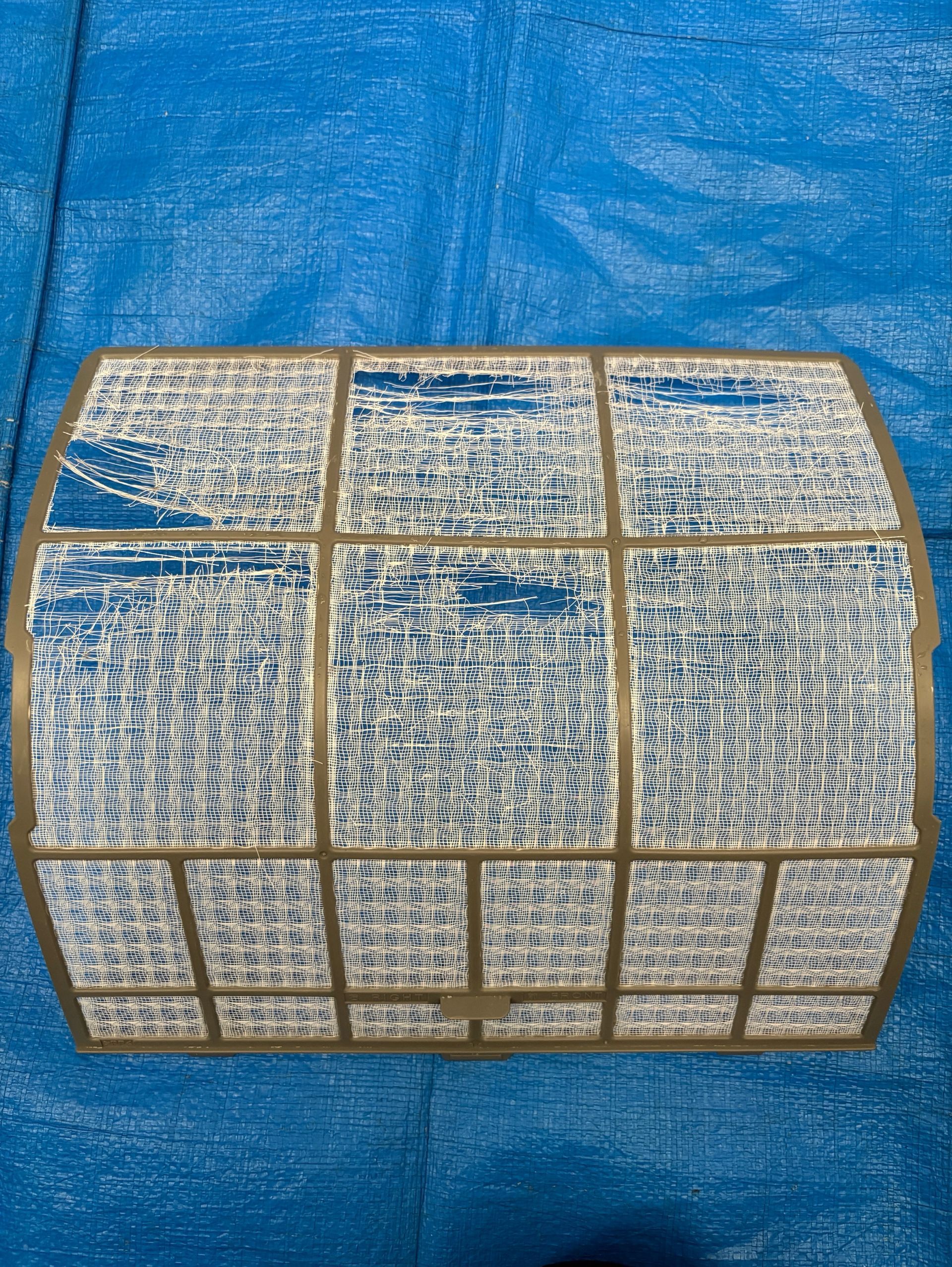※写真は某国内メーカー設置後7年間経過後の樹脂製のフィルターになります。ボロボロに朽ちてます。。