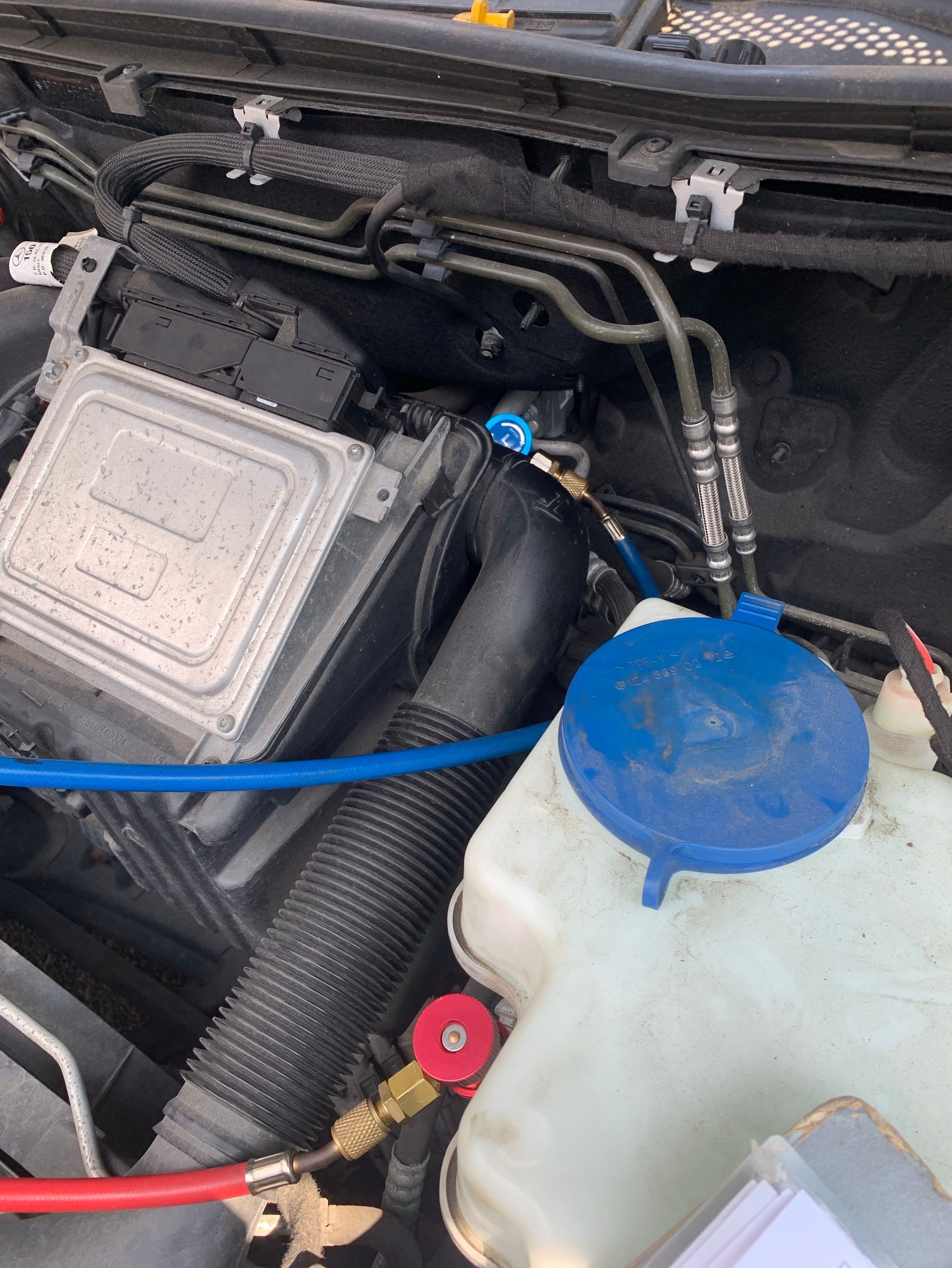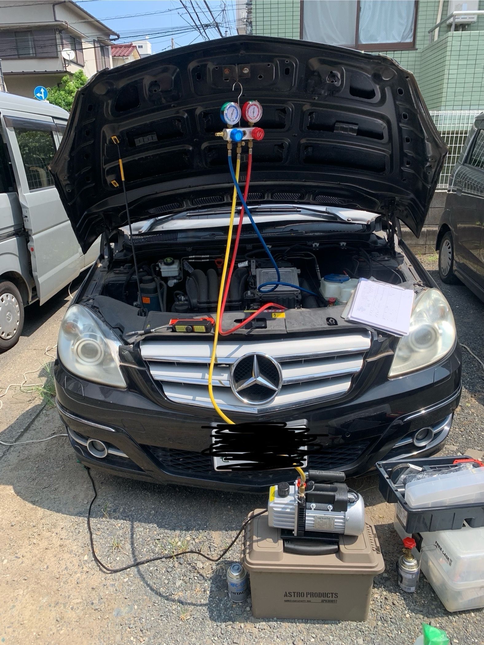 ベンツBクラス、出張でエアコンガス補充を致しました。