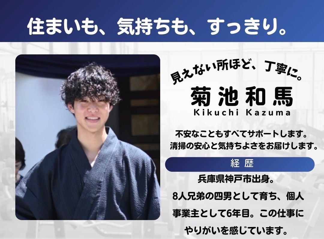 はじめまして!関西ハウスクリーニング代表の菊池和馬です😊