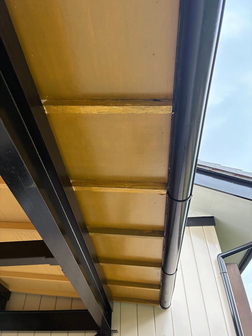 既存の軒天の色味に合わせて調色を行い、部分的な補修であっても周囲と違和感なく馴染むよう仕上げました。