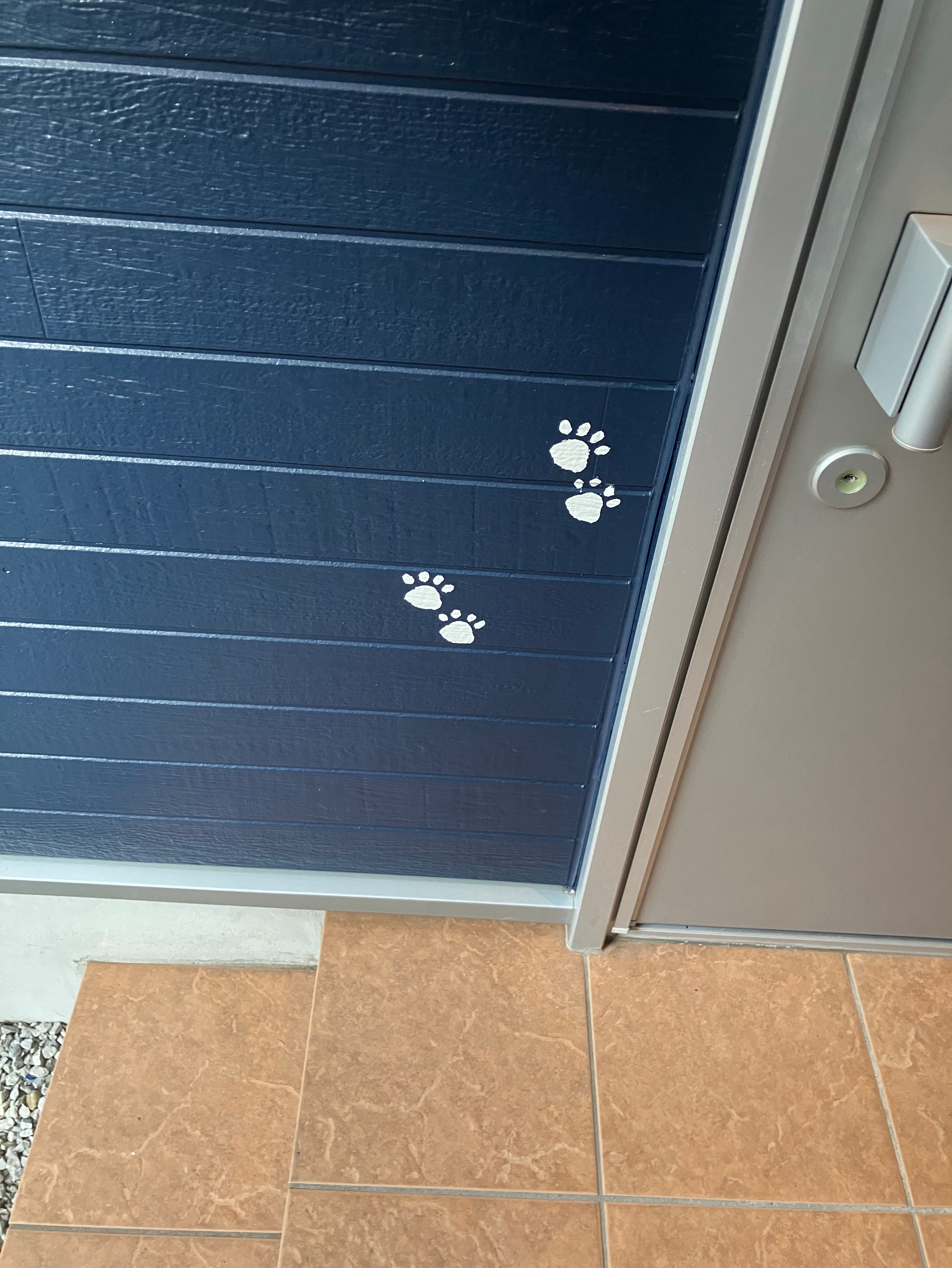 本日は外壁塗装の最終確認でした‼︎アクセントでワンちゃんの足跡をつけて欲しいとご依頼があり2ヶ所ほどサービスで書かせていただきました!お客様のご要望はできるだけかなえるようにしております‼︎本日もご安全に‼︎