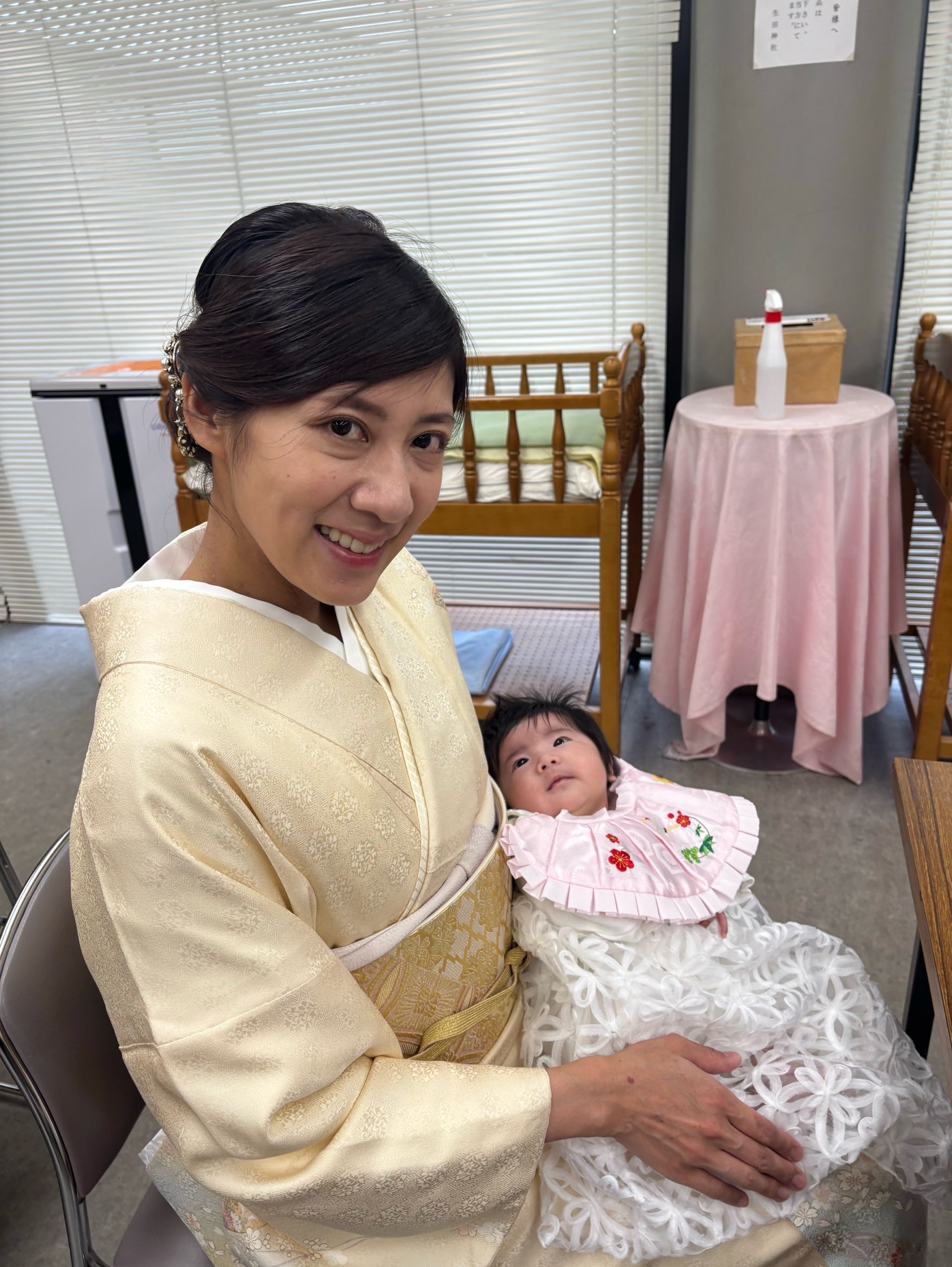 お宮参りのお母様のお着付けとヘアーをしました