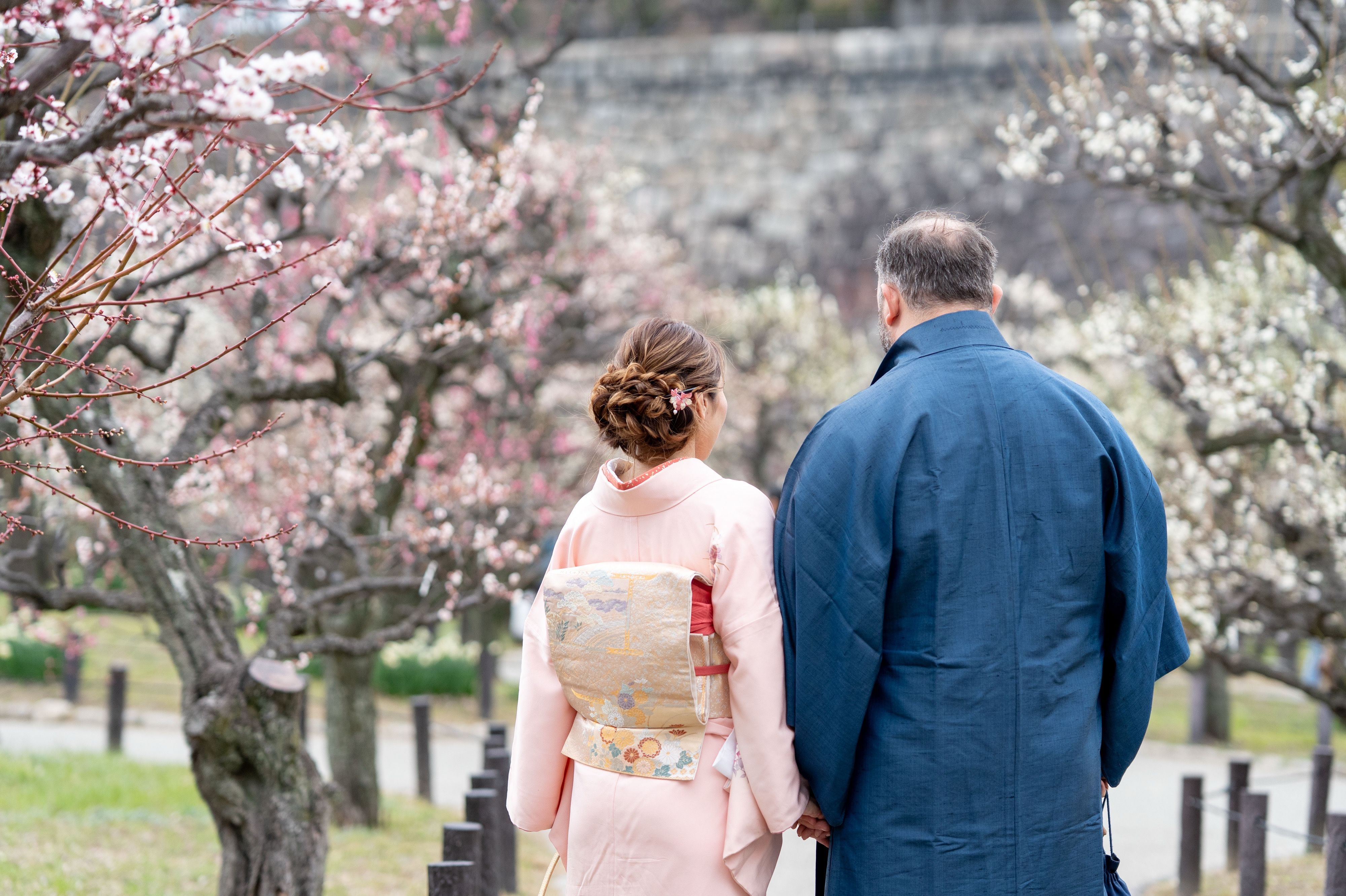 ところがひとたび梅の前やお城を背景に立っていただくと、自然とお二人だけの空間が出来上がり、あまりにも素敵だったので夢中でシャッターを切っていました。