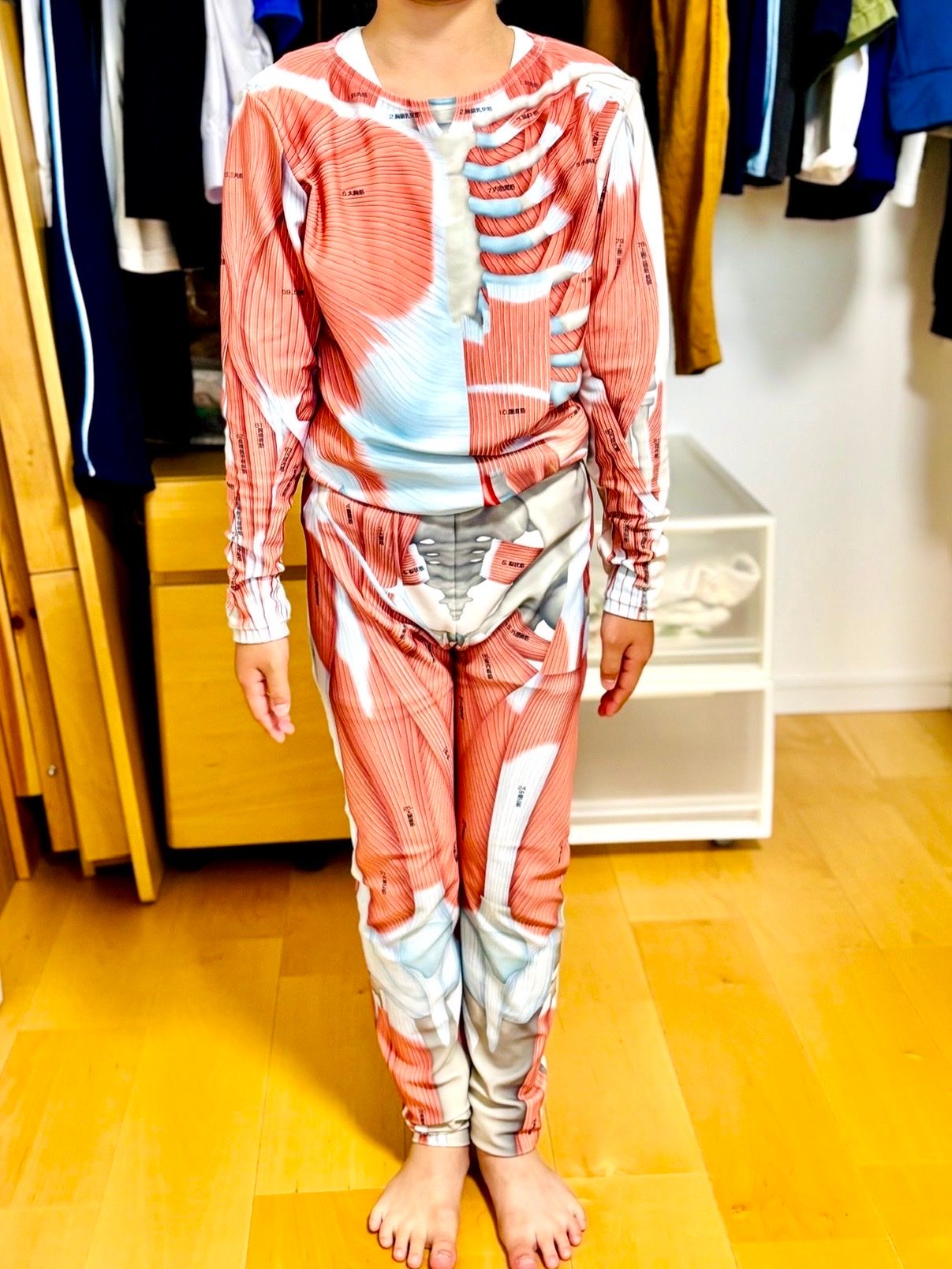 先日片付けに行った際、お客様の手放すアイテムの中でどうしても欲しいものがあったので、お願いしていただいてきました。これがあれば体のことを今より理解できそうだし、なにより進撃の巨人みたい!と考えていましたが、もう息子に取られました。自然教室にパジャマとして持っていくそうです。