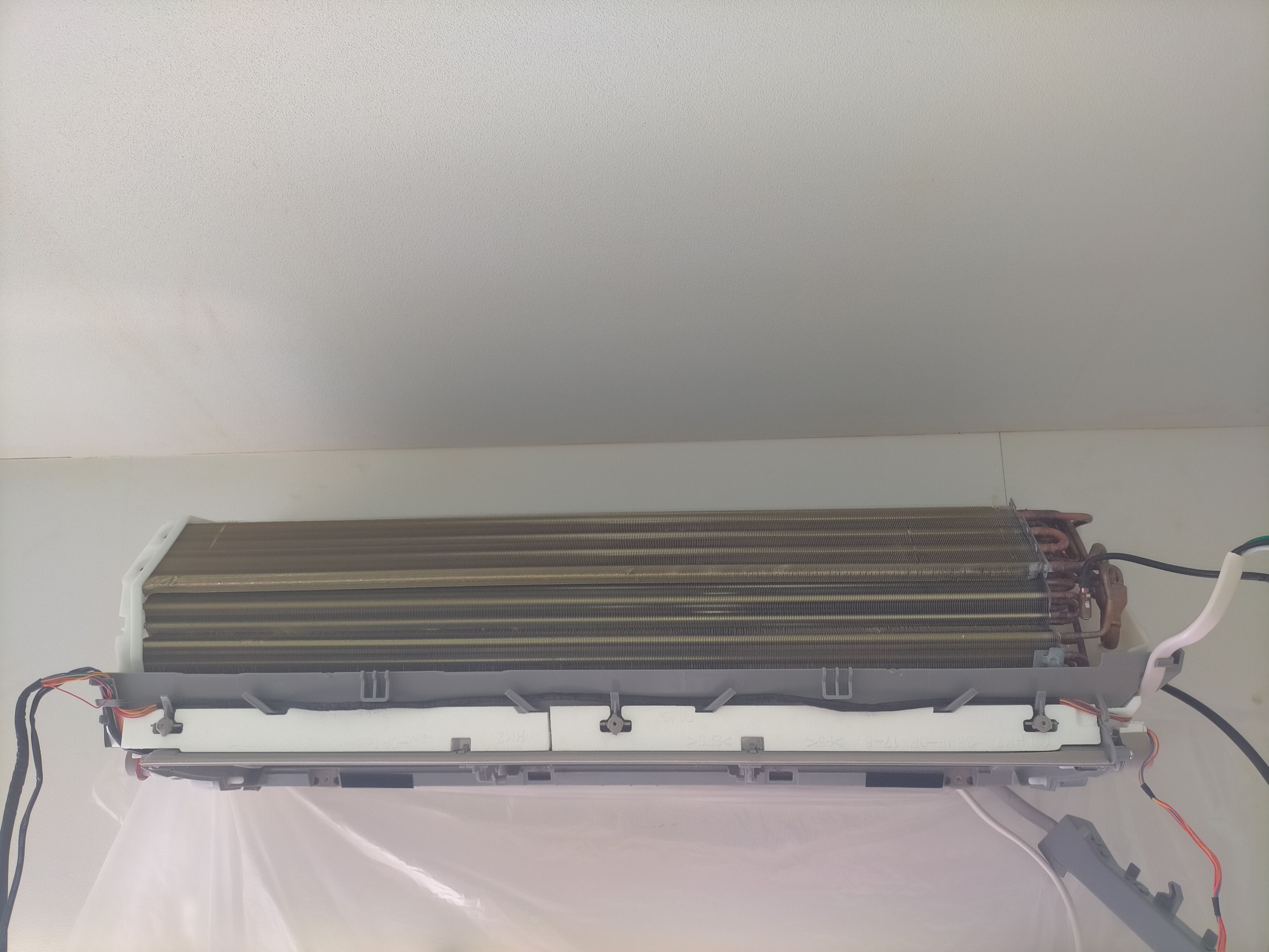 数々のパーツを外されたエアコンを見て、「蟹みたいになっちゃった」とお客様が話していました。