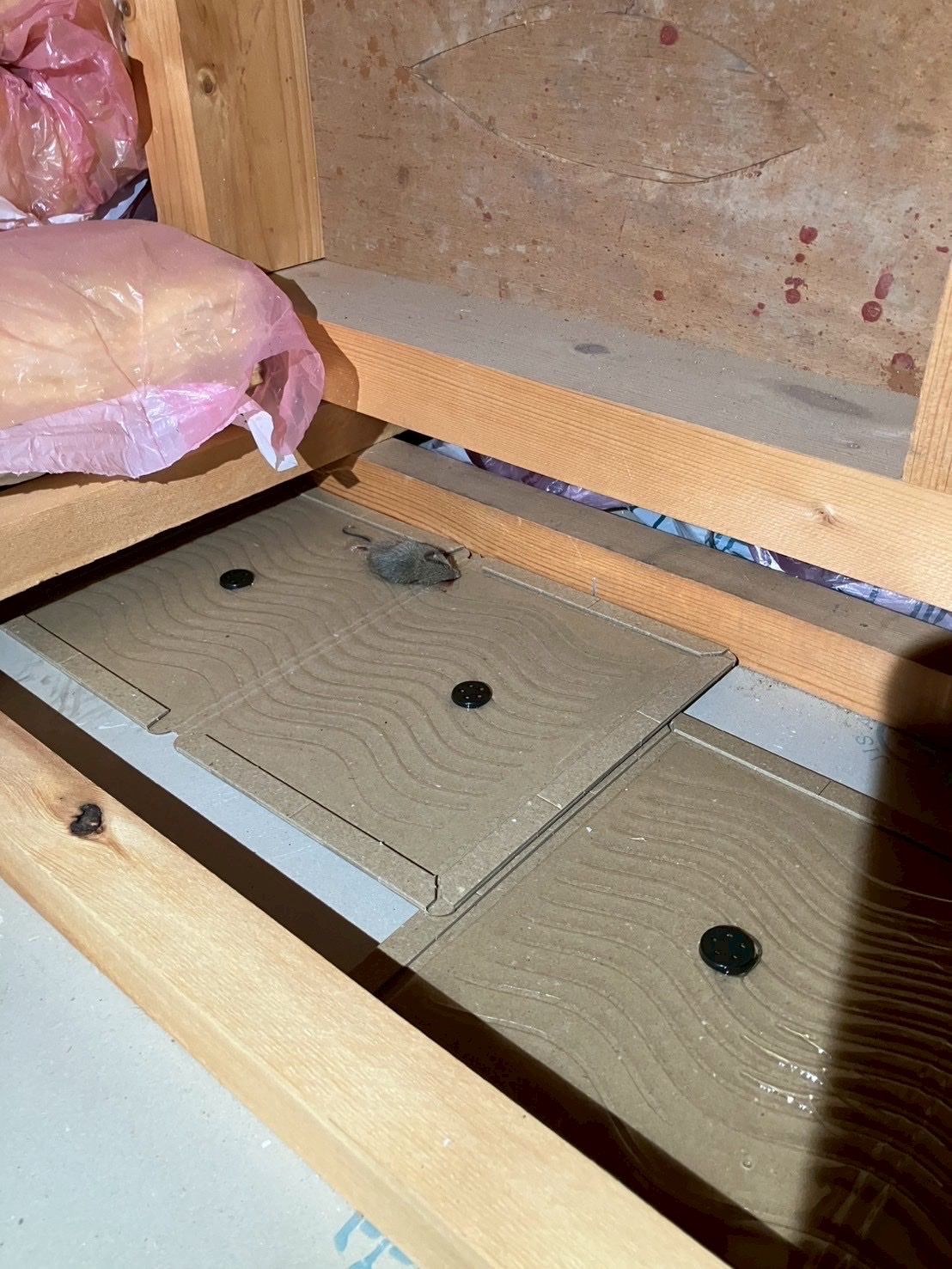 各天井裏・床下へ殺鼠剤〔毒餌〕を設置します。