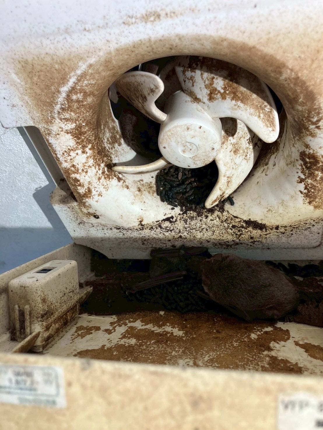 換気扇内、外壁に付着した糞などを清掃します。