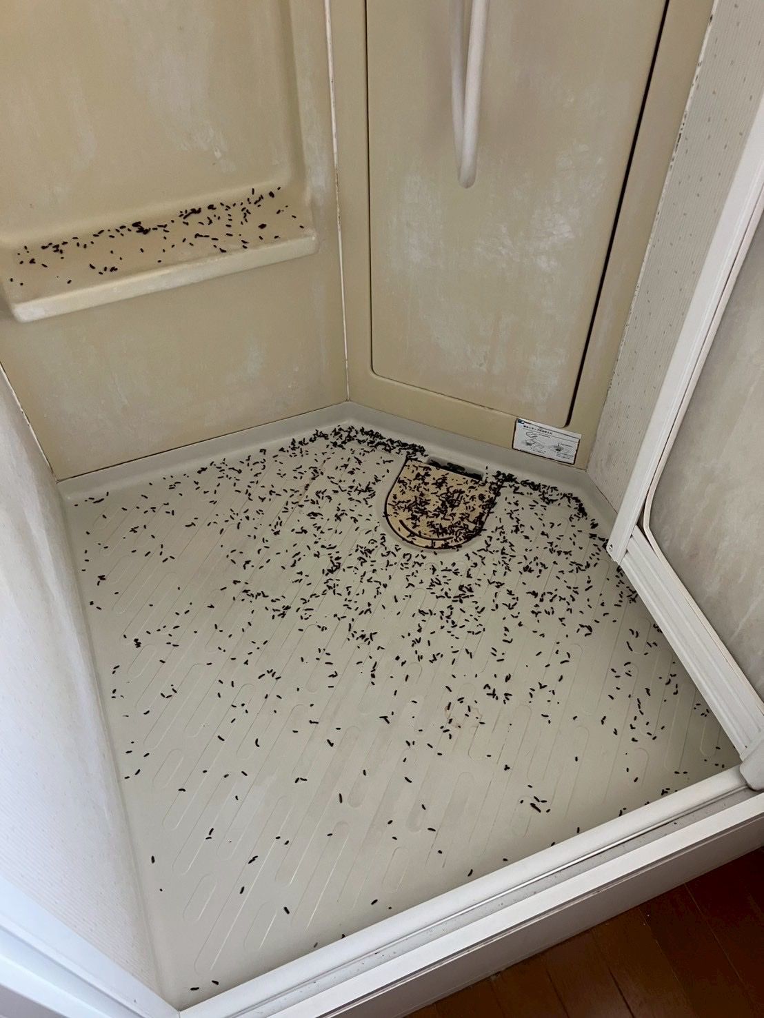 今回は換気扇内にコウモリが棲みついてしまい、風呂場内に大量の糞が落ちる為、被害のある換気扇はもちろんの事、その他の換気扇も予防として封鎖いたしました。