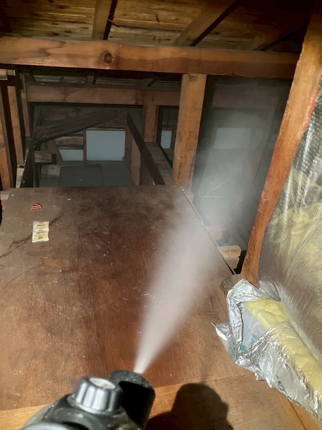 追い出し剤を床下や各天井裏へ散布し追出しを行います。