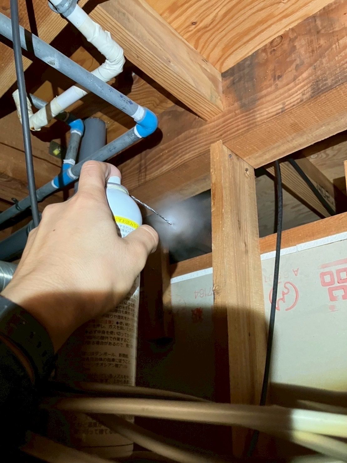 追い出し剤を床下や各天井裏へ散布し追出しを行います。