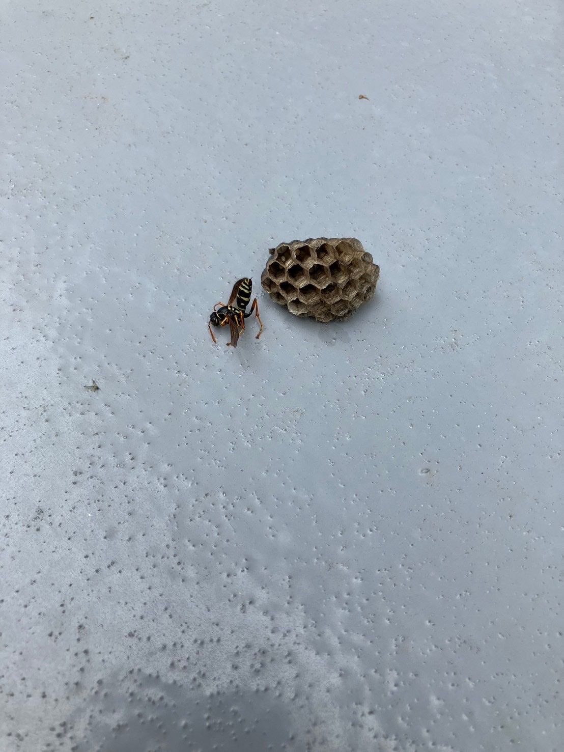 まだ巢は小さく、ハチの数も1匹〔女王蜂〕のみでした。