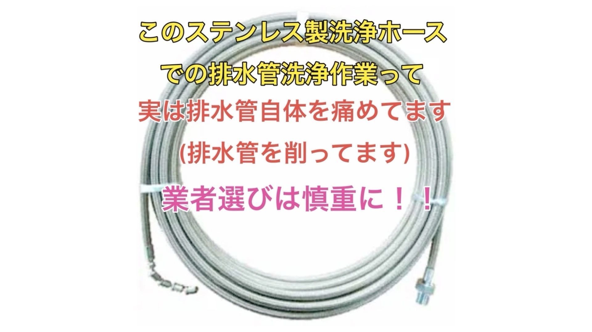 ③ステンレス製洗管ホースでゴリゴリ排水管を削っている業者が多々います。