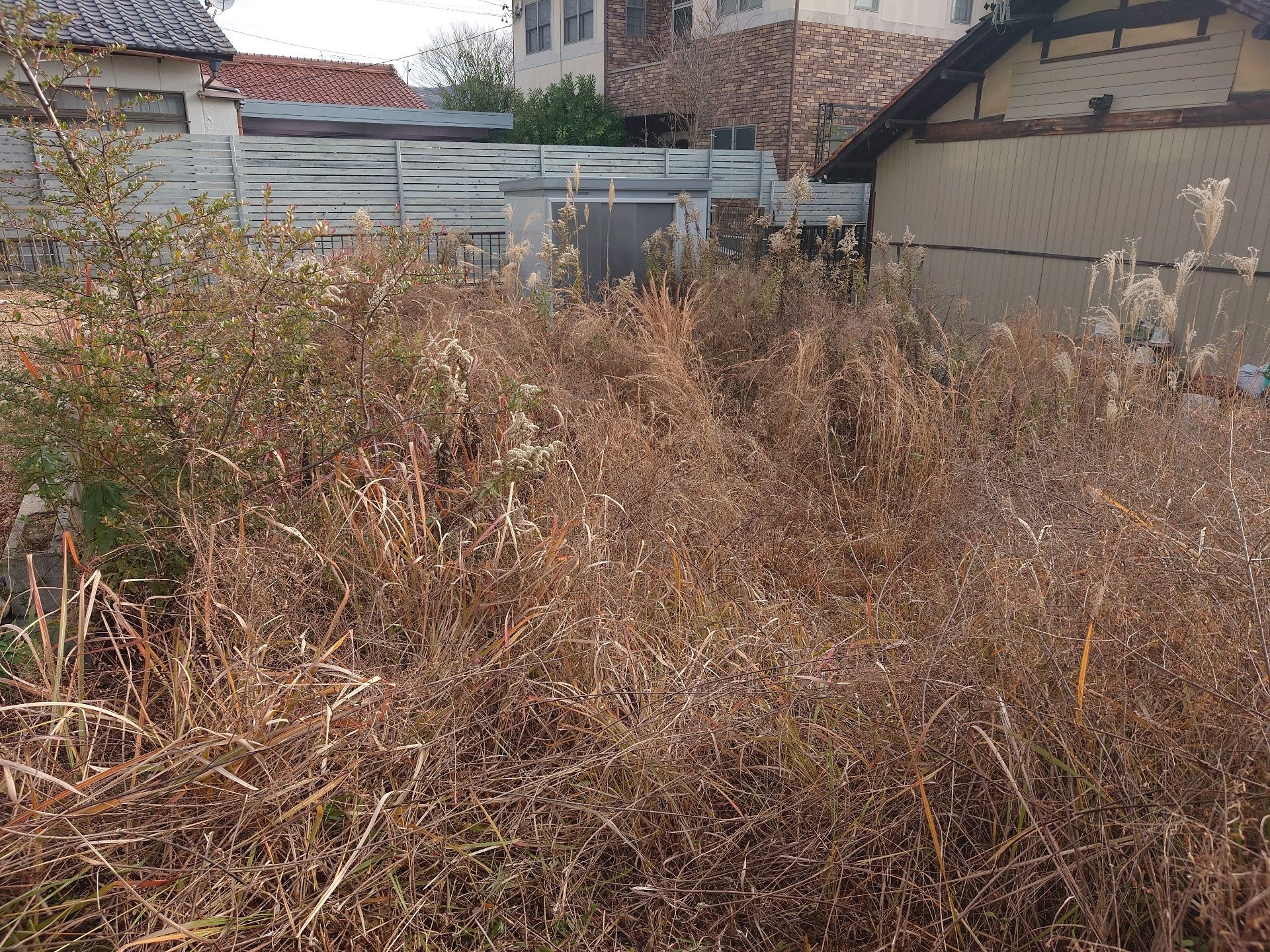 それに冬場特有の枯れ色の草はよく倒れていたりで刈りにくいです、それに定番の引っ付き虫。地域によって呼び名は違うのかな?