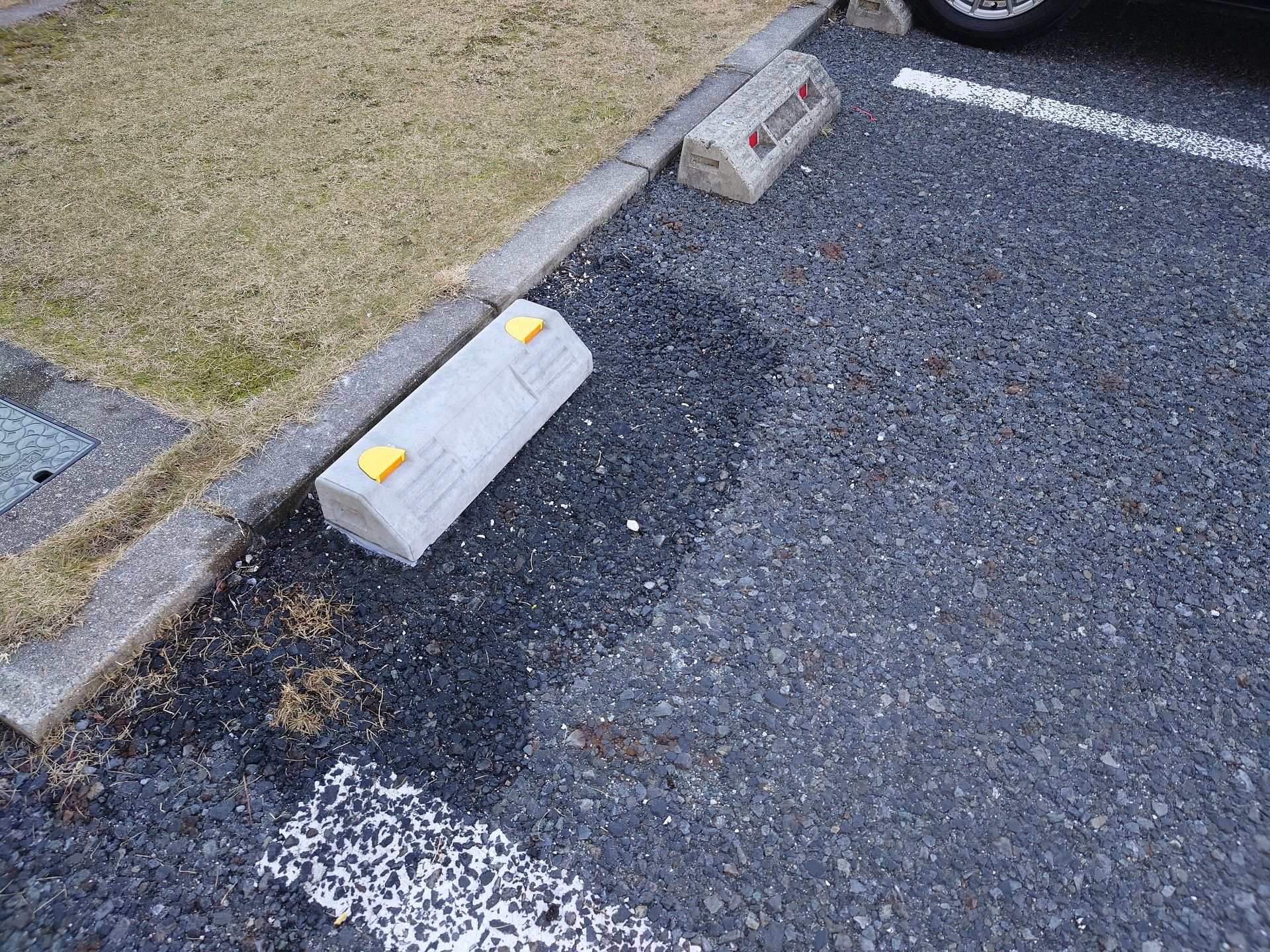 どうしても同位置ですとブロックの穴も基本的に同じ位置に空いているのでスカスカになる可能性や、元々のボンドの影響で駐車ブロックを置いたときにぐらつくなど元々空いている穴の弱いほうにピンが逃げてしまったり結構大変な部分があります。