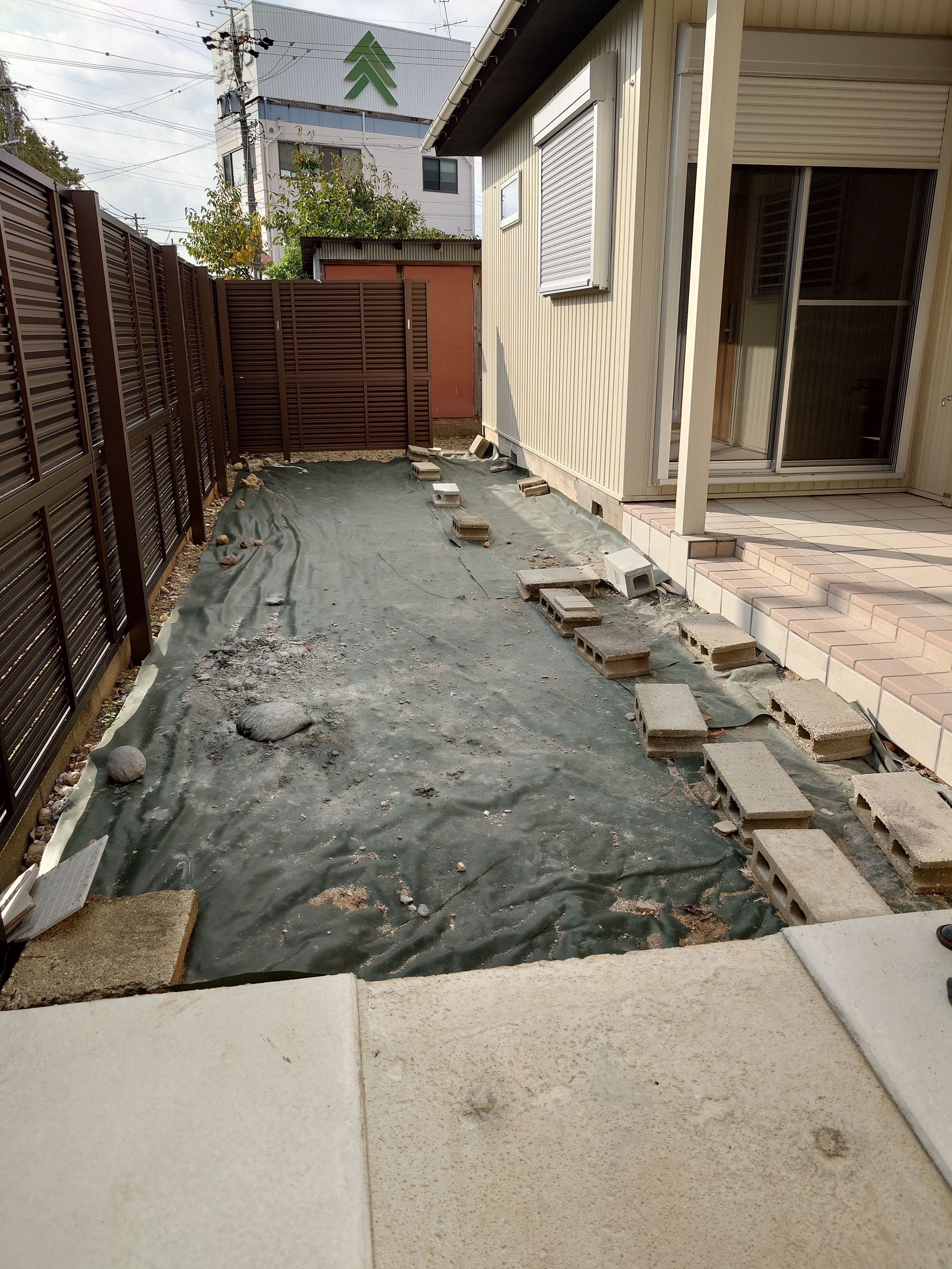 お施主様の方で防草シートまでの準備がしてあり、あとは上の残置物はお施主様が片付け後施工とのことでした。