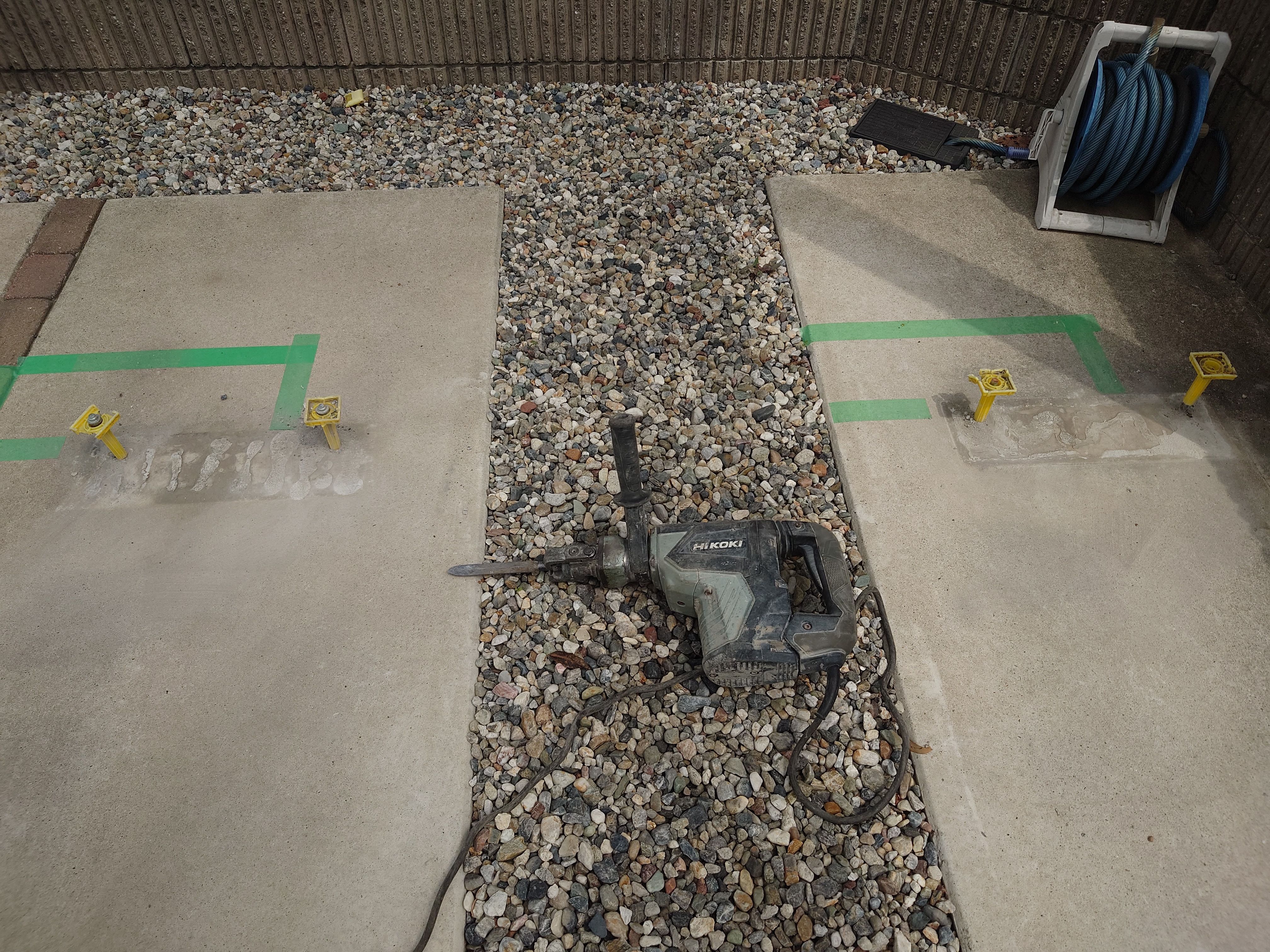 設置場所が決まり位置だしをして、ブロック撤去にはいります。