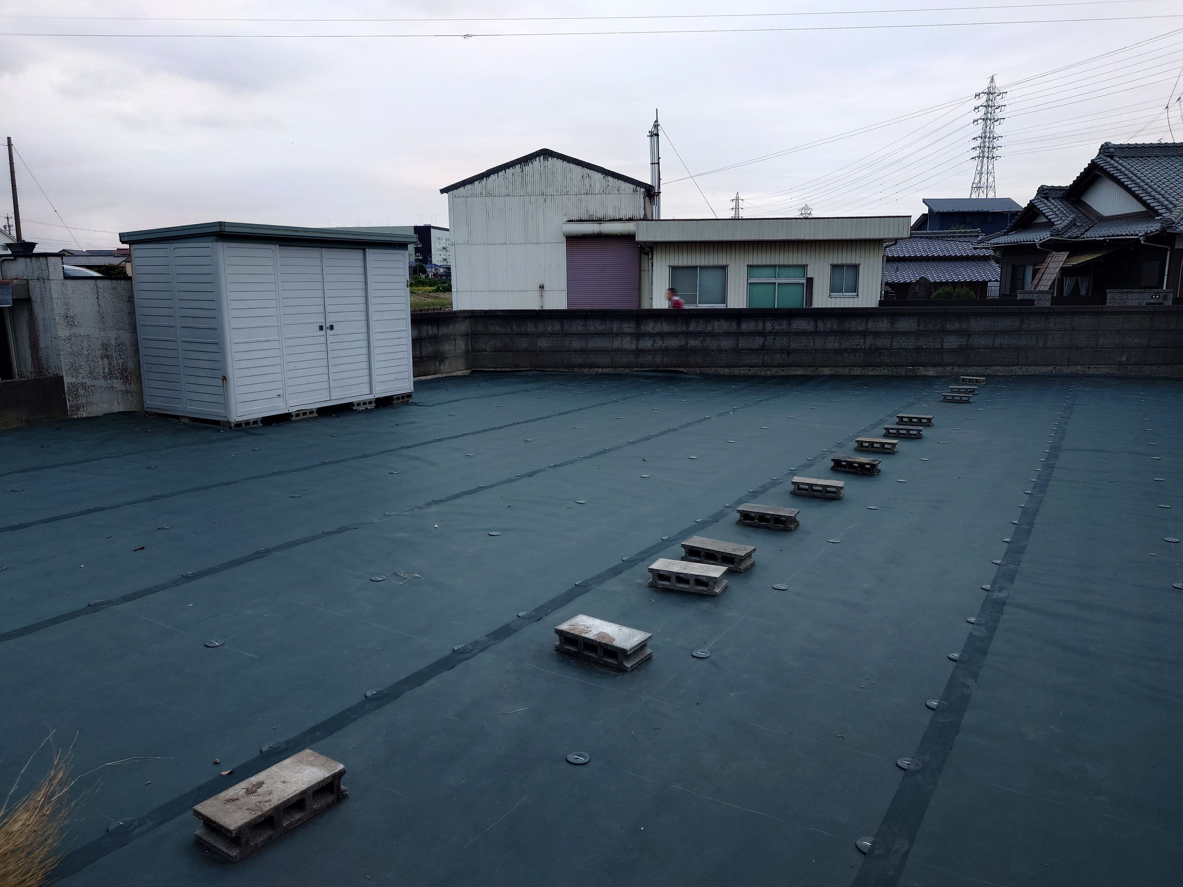 既設シート撤去処分、整地、転圧、新規防草シート、ピン、テープ貼りになります。