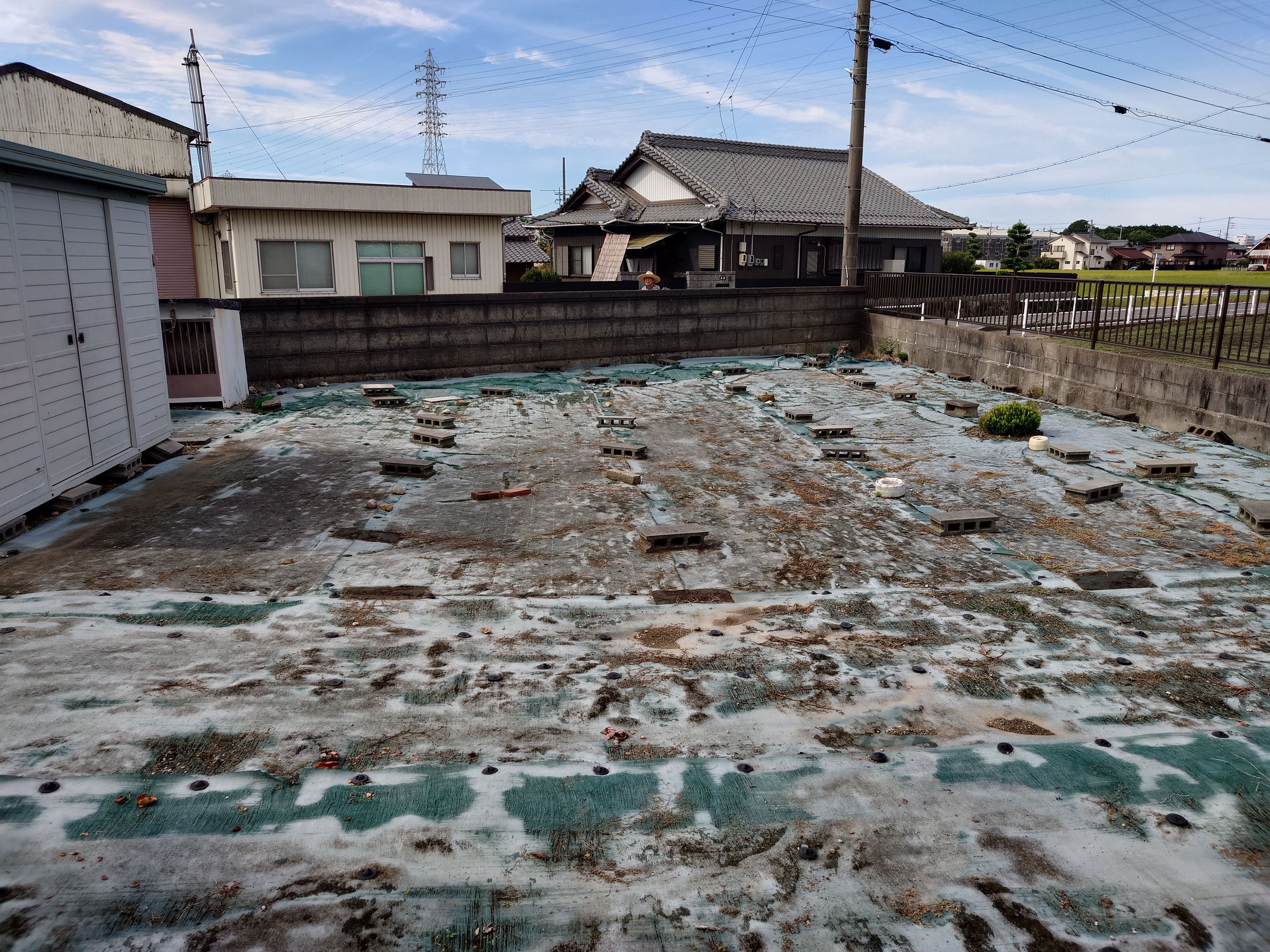 今日は既設のボロボロになった防草シートの撤去をして、新たに防草シート敷設のご依頼になります。