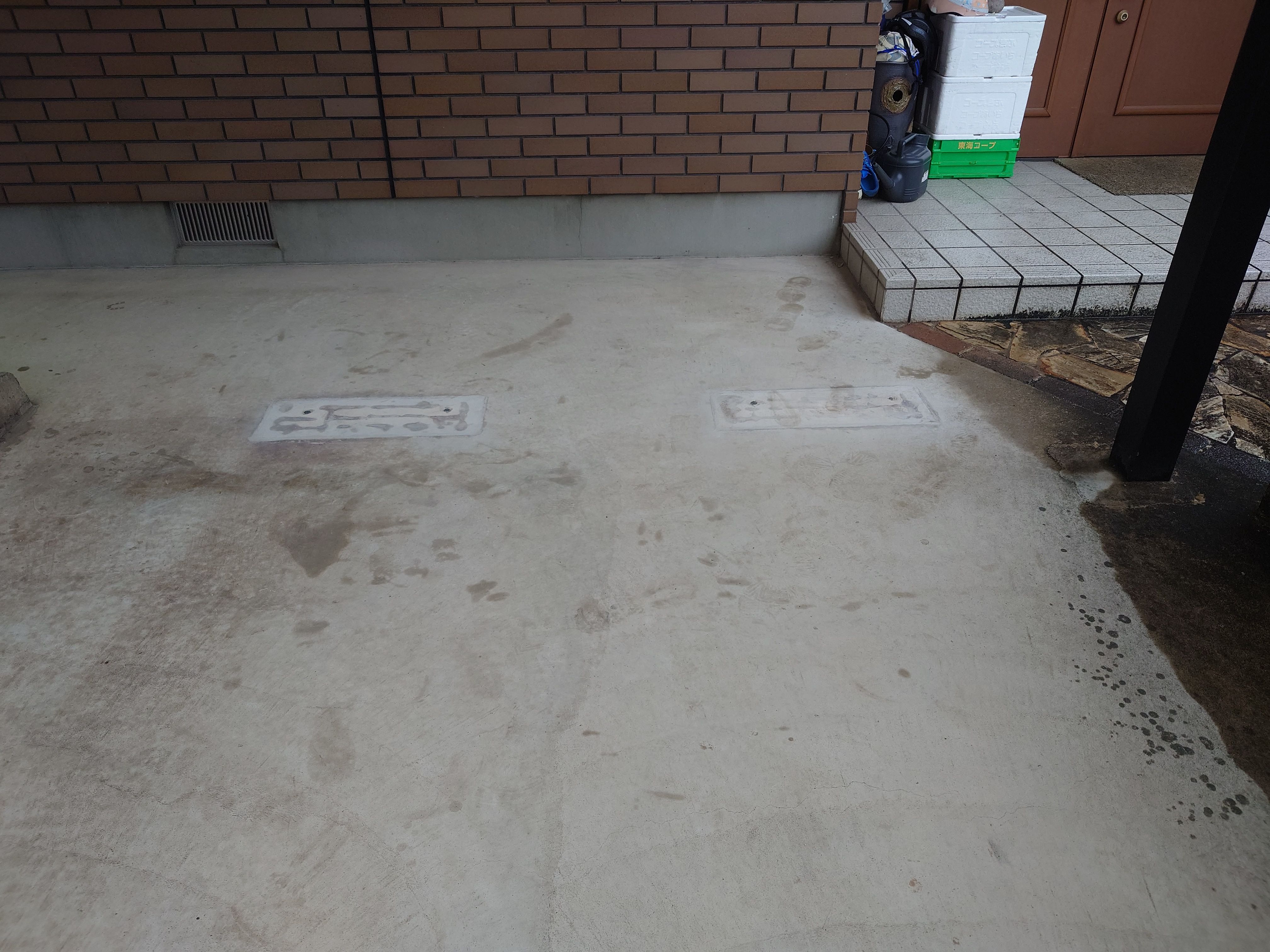 設置された方の施工もバッチリで駐車ブロック設置もホールインアンカーできっちり止めて勾配(傾き)はモルタルで下地合わせてありました。