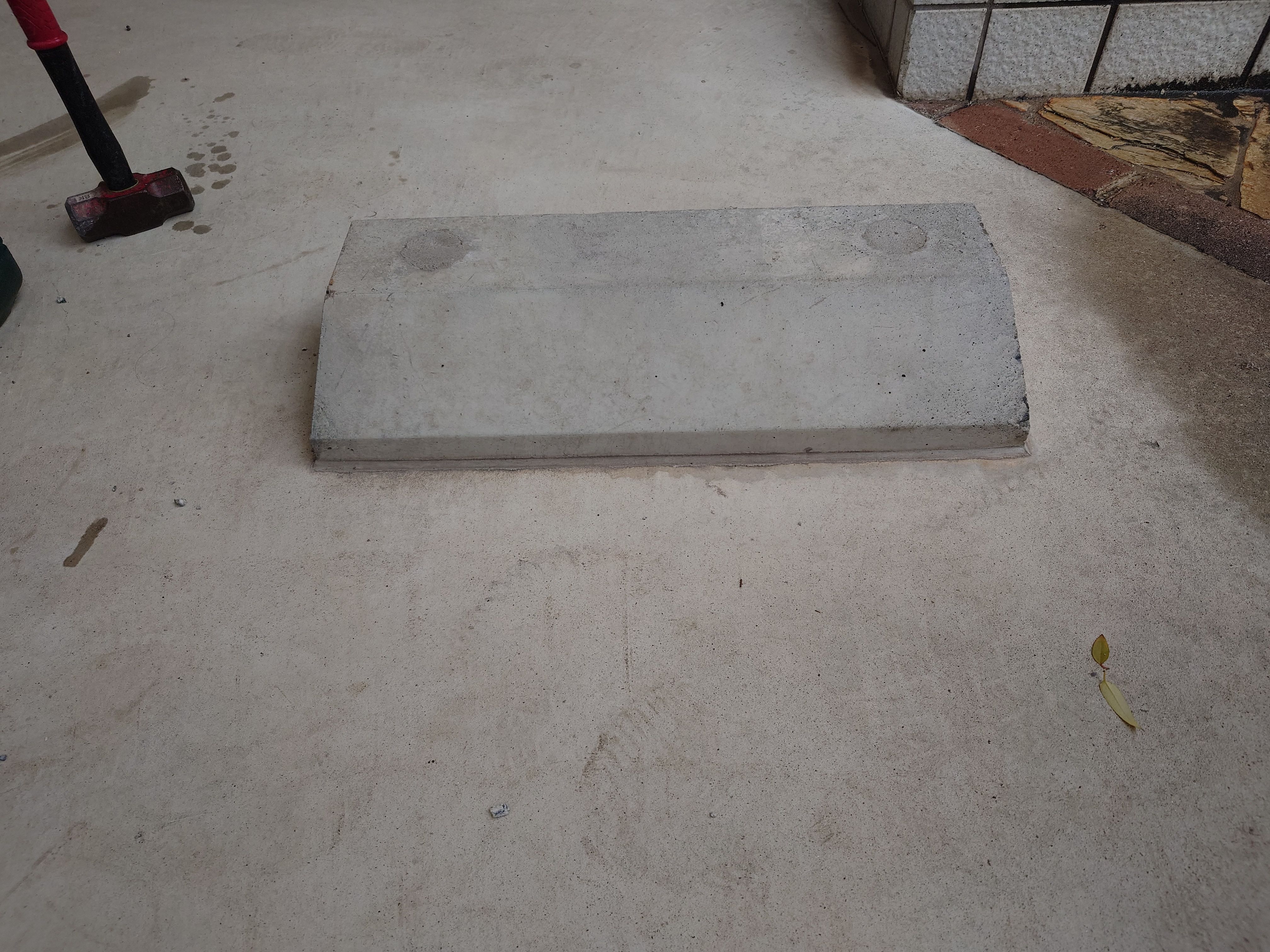 こちらも負けないようにブロック撤去後ボンド跡、モルタル跡きっちり除去してお子様が外した跡でつまずかないように綺麗に取り除いて完了になります。
